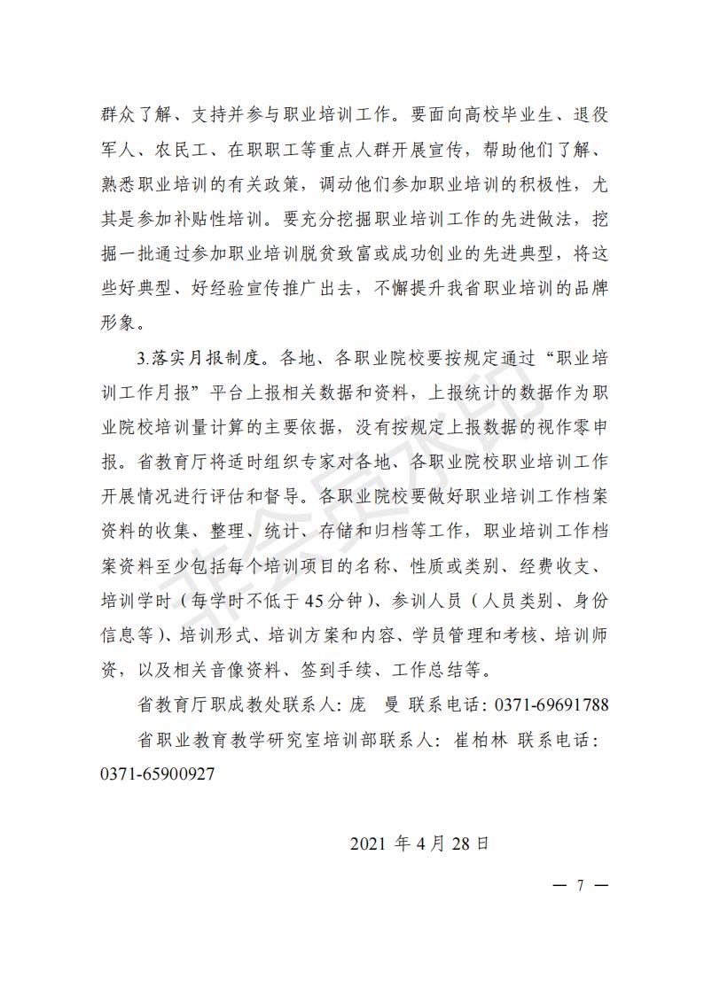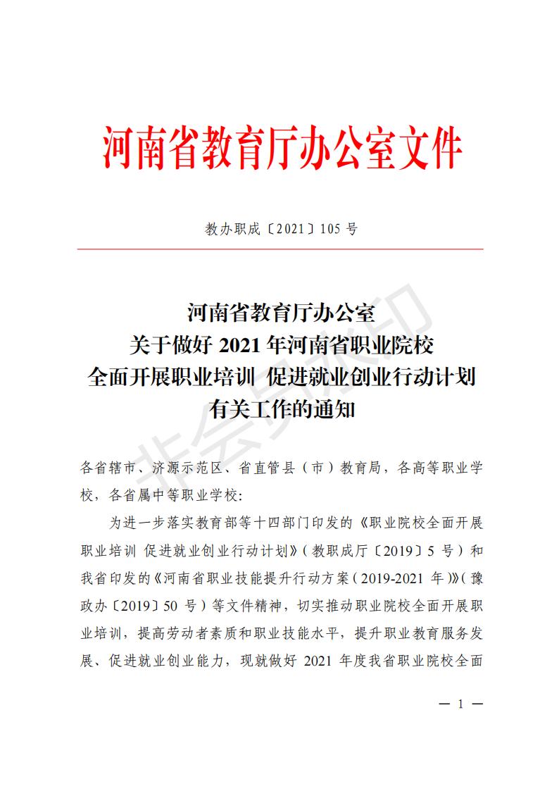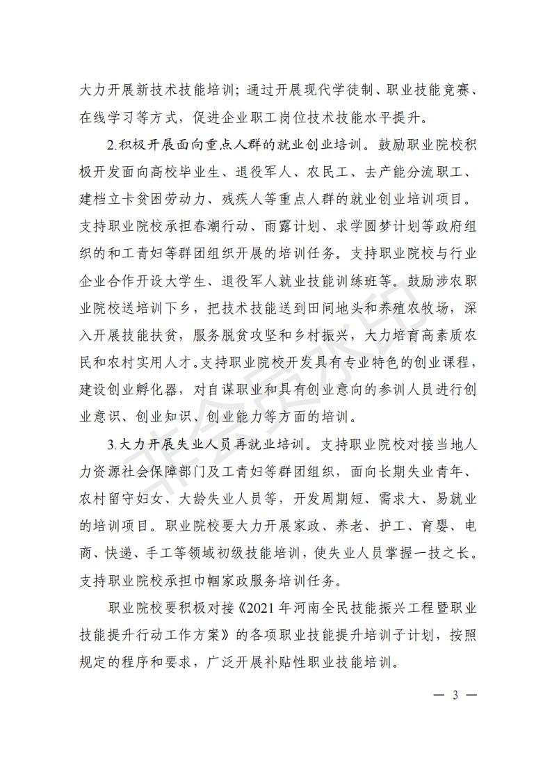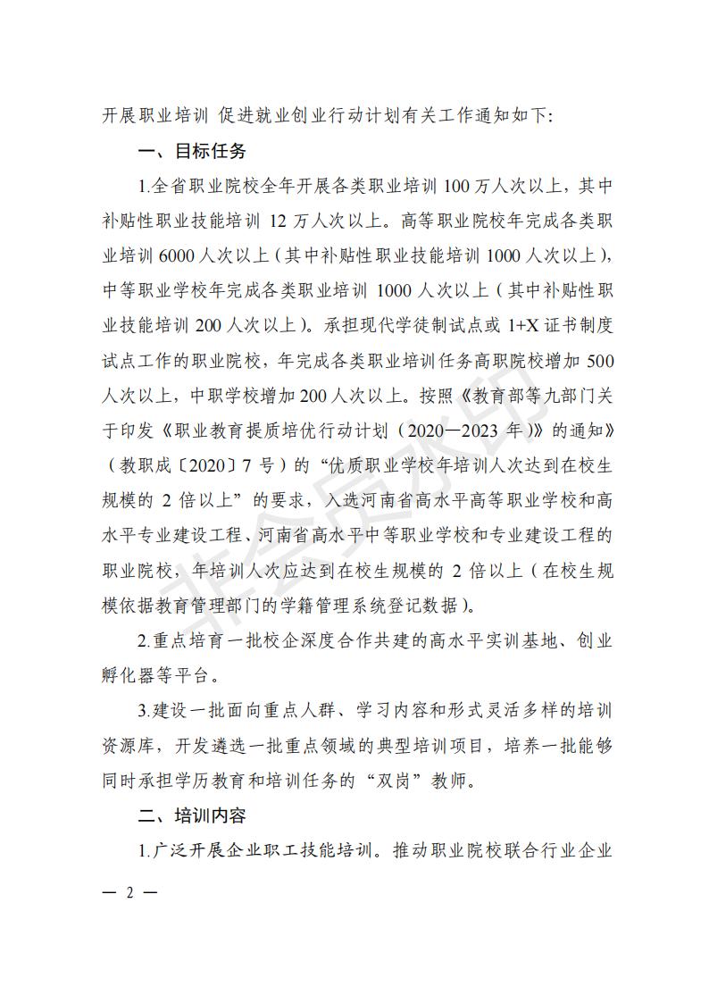 关于做好2021年河南省职业院校全面开展职业培训促进就业创业行动计划有关工作的通知