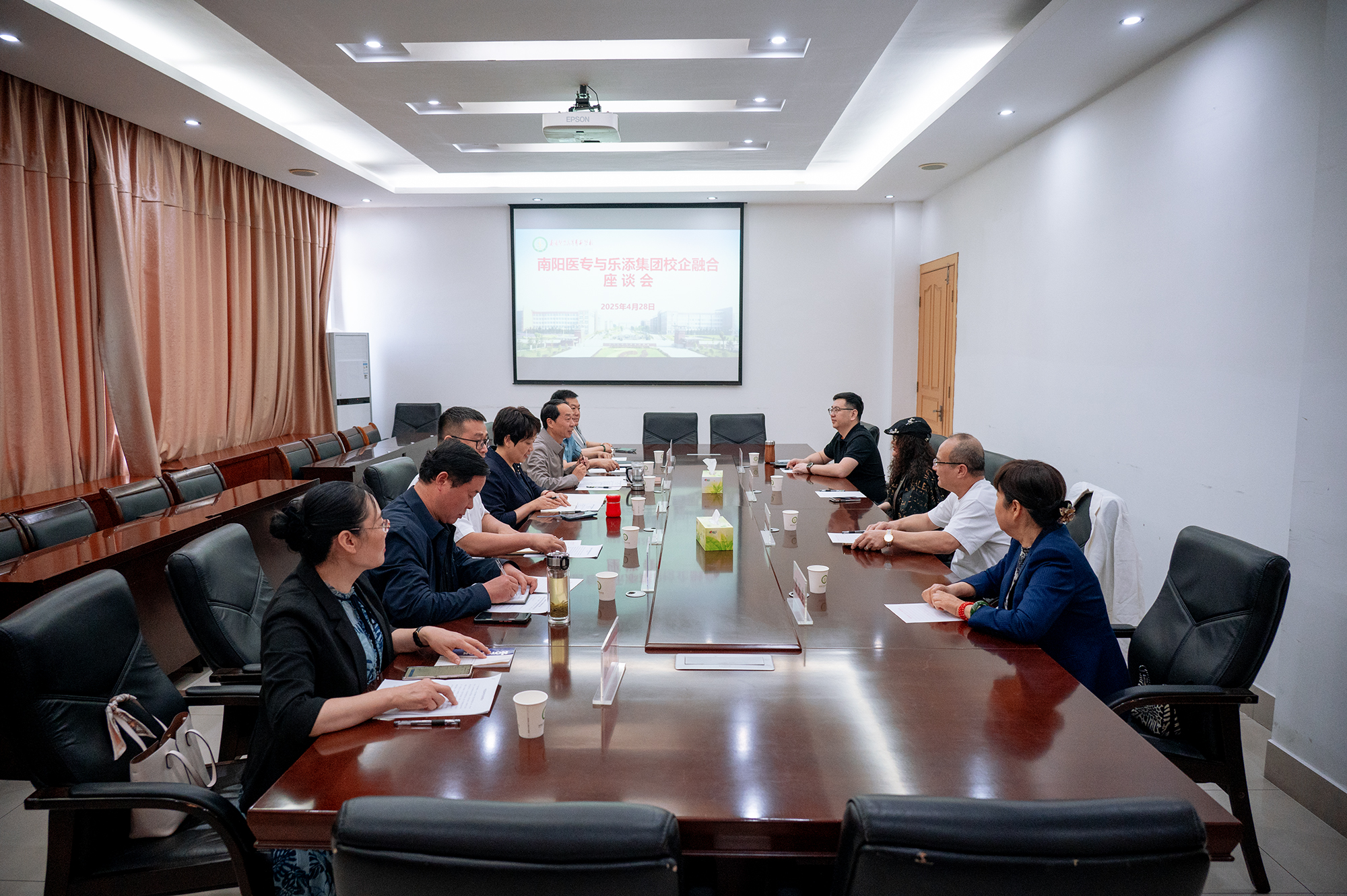 本网讯(文/教务处 李梦华)4月28日,学校与乐添投资控股(广东)集团有限公司在仲景西区行政楼三楼2号会议室召开校企融合座谈会。乐添集团董事长孔辉、总裁庄浩、总经理马乙、天津区域总经理陈保荣,校党委副书记、校长范真出席,学校相关部门负责同志参加。校党委委员、副校长刘荣志主持。