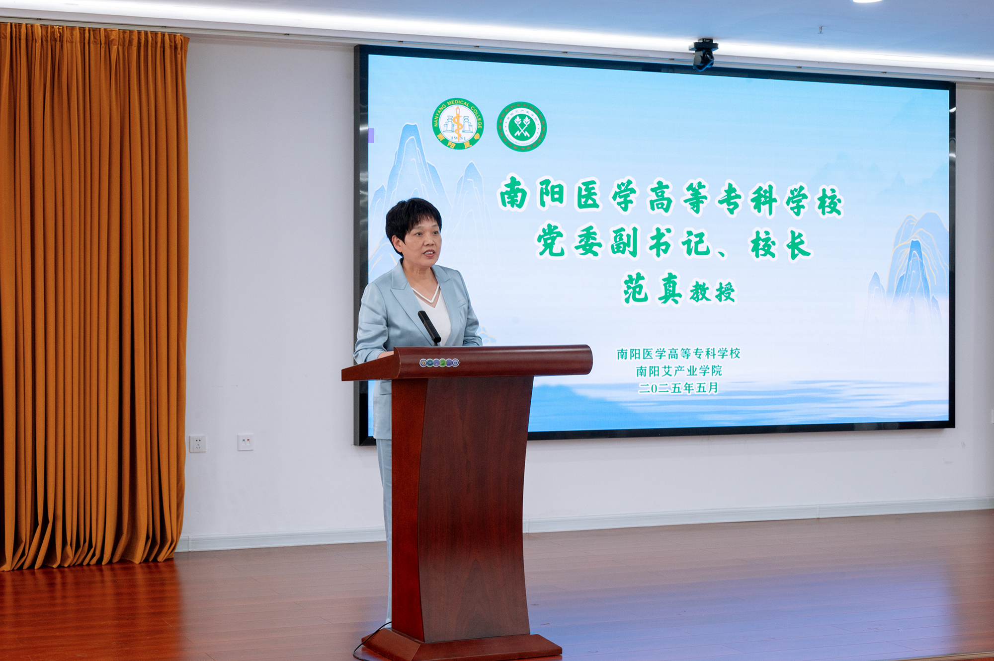 范真致辞,她指出,南阳医专扎根仲景故里,以赓续医脉、传承和弘扬仲景文化为己任,走出了一条独具特色的创新发展之路。学校聚焦“南阳艾”标准化、产业化和品牌化,扎实开展科研创新转化、种植技术服务和“仲景灸师”培训。希望与会的专家学者、行业精英和各理事单位深化校企合作,围绕科研创新、人才培养、社会培训等方面协同发力。