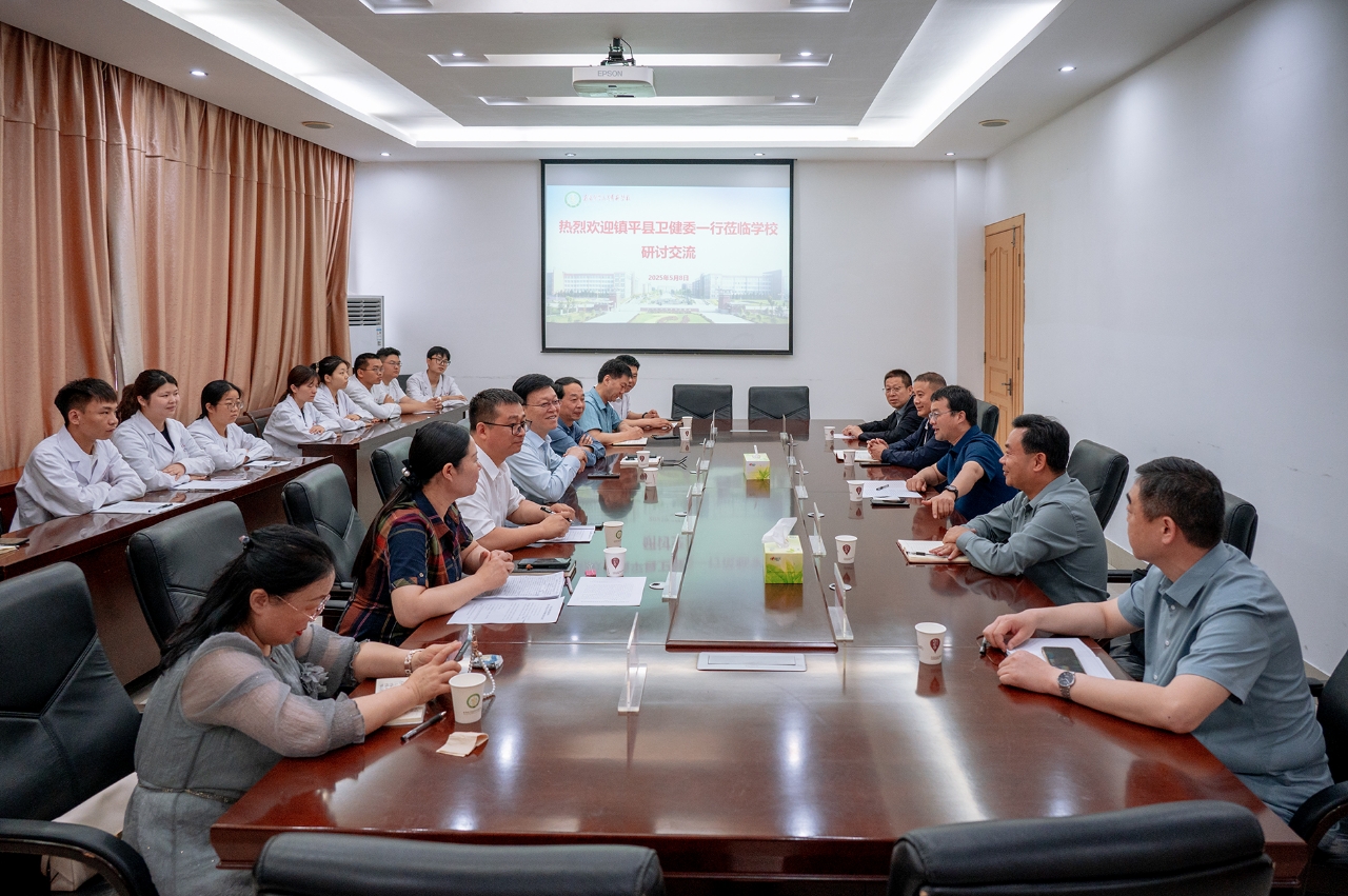 本网讯(文/临床医学系 王川)5月8日上午,镇平县卫健委党组书记、主任肖实一行莅临我校,就临床医学专业订单定向人才培养、首届毕业生就业安排等事项开展研讨交流。校党委书记柳明伟、副校长刘荣志出席,相关部门负责同志及订单定向班学生代表参加。会议由临床医学系党总支书记张辉主持。