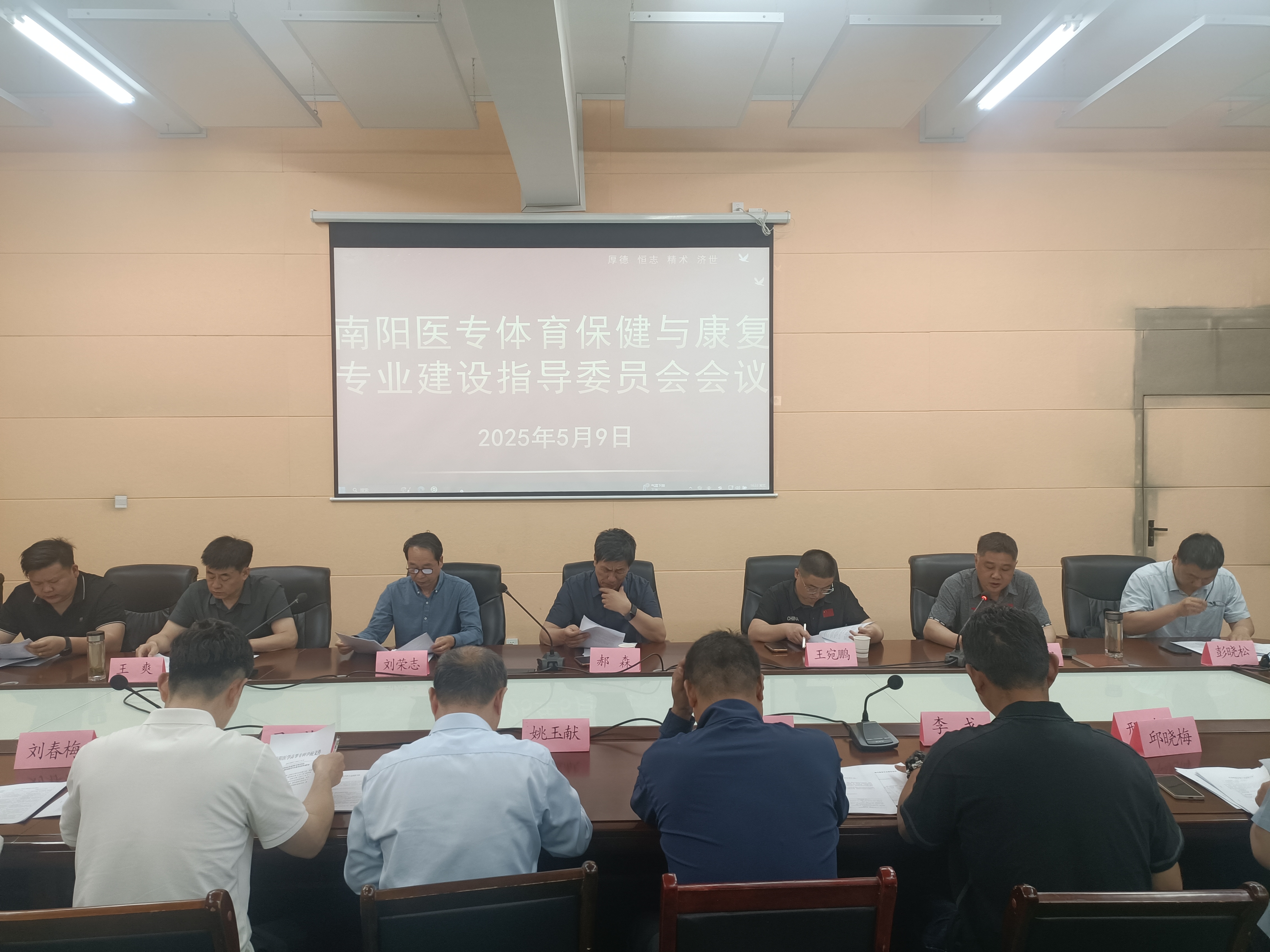 本网讯(文/体育保健与运动医学系 李朝 李俊杰)5月9日下午,我校召开体育保健与康复专业建设指导委员会会议,围绕体育保健与康复专业、社会体育专业,从行业发展、市场需求、专业人才需求以及专业建设、校企合作等方面深入研讨。校党委委员、副校长刘荣志,南阳农业职业学院体育与健康学院院长郝森、南阳市体育事业发展中心主任王爽、南阳市体育医院院长王宛鹏、河南省晟皓体育产业有限公司总经理曹凯峰出席,学校相关部门负责同志及教师代表参加。会议由体育保健与运动医学系主任李朝主持。
