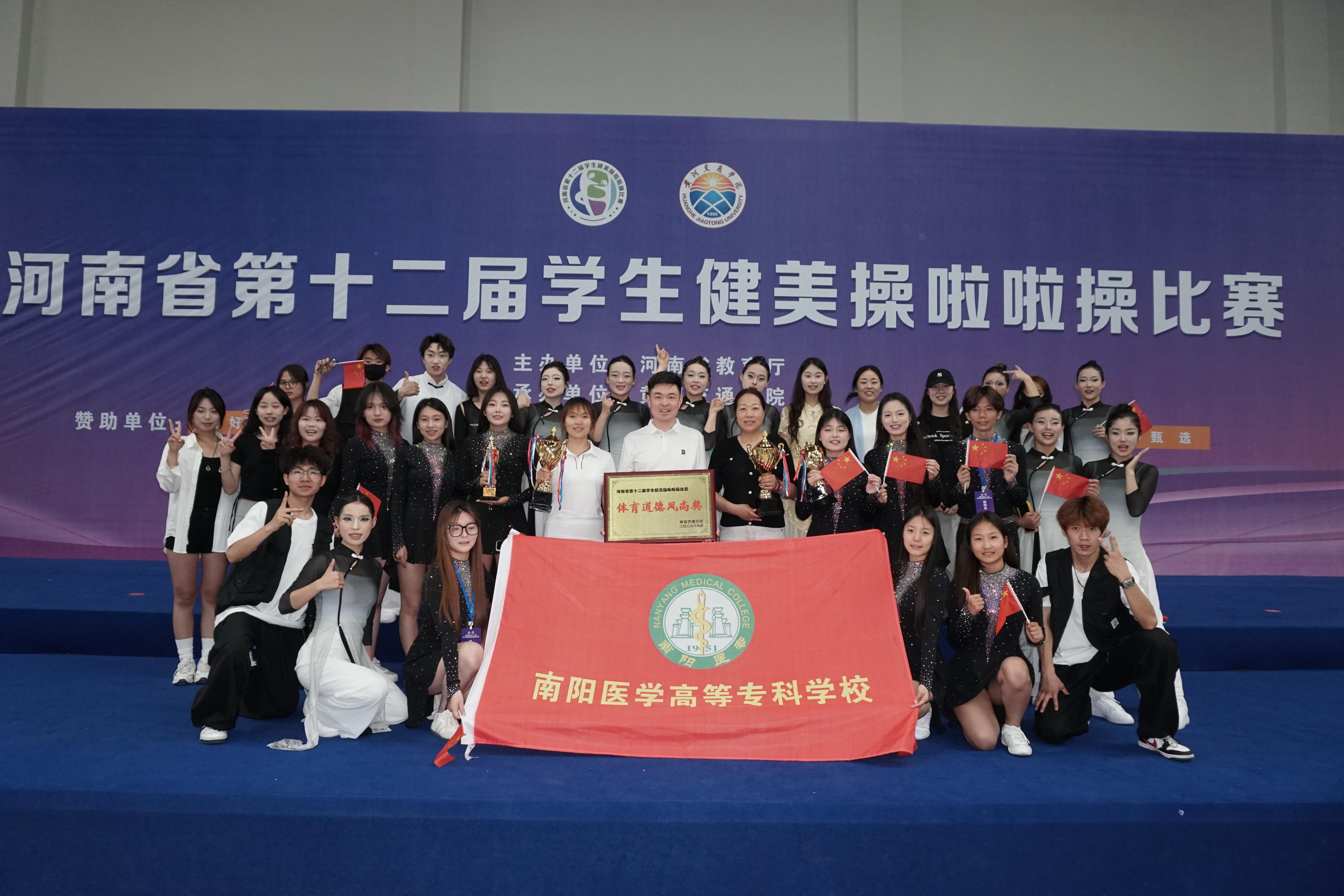 本网讯(文/体育保健与运动医学系 习茵)5月29日至6月4日,由河南省教育厅主办的河南省第十二届学生健美操啦啦操比赛在黄河交通学院成功举办。我校体育运动队凭借出色表现,获得专科组排舞自选动作第一名、街舞自选动作第一名、街舞规定动作第三名、轻器械健身操第二名、啦啦操花球第四名,并荣获体育道德风尚奖。