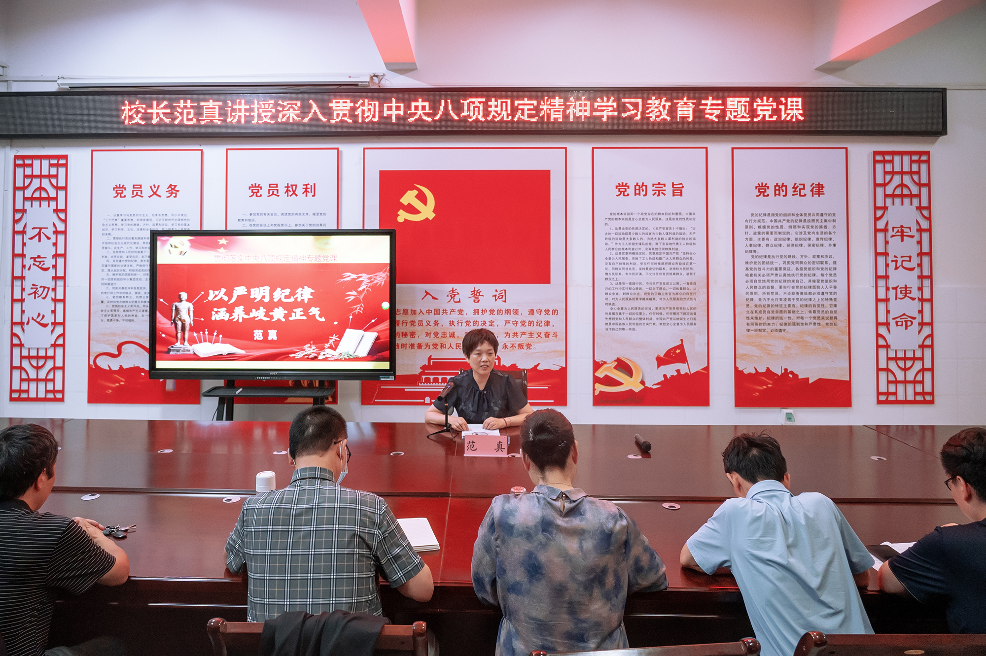 本网讯(文/中医系 刘元)6月18日下午,校长范真深入中医系讲授深入贯彻中央八项规定精神学习教育专题党课,中医系全体教职工、学生党员参加。党课由中医系党总支书记郭玉伟主持。
