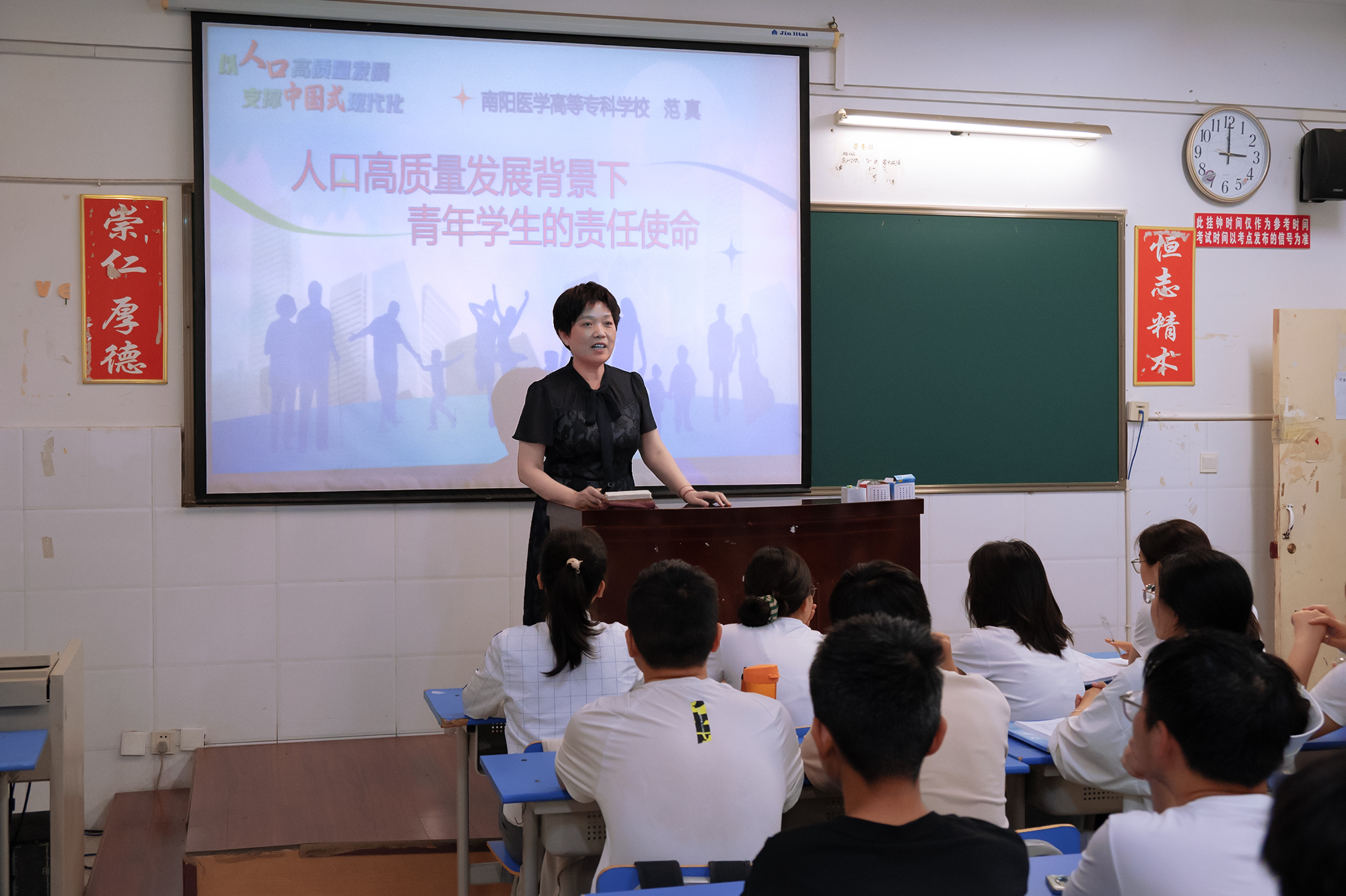 本网讯(文/中医系 赵增强)6月18日下午,校长范真走进思政讲堂,以“人口高质量发展背景下青年学生的责任使命”为主题,为中医系学生讲授了一堂精彩纷呈的专题思政课。