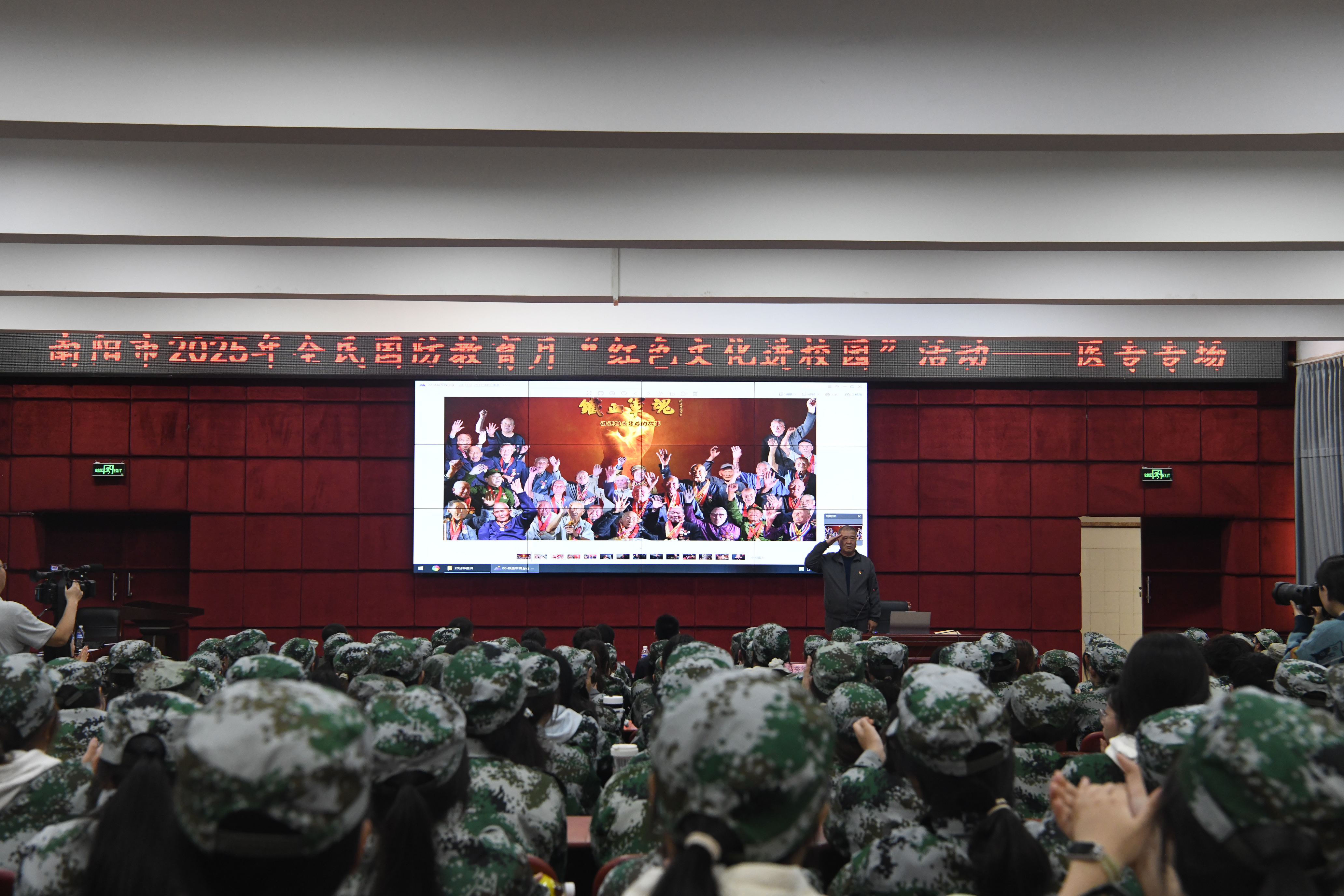 本网讯(文/学生处 皇甫乐观)9月23日下午,南阳市退役军人事务局与我校联合主办的“红色文化进校园”活动在我校举行。活动以“传承红色基因 筑牢国防观念”为主题,是南阳市2025年全民国防教育月活动之一。市退役军人事务局党组成员、副局长孔令金,市国防教育中心副主任马黎,市退役军人事务局机关党委专职副书记张海山,南阳医专副校长王岩出席。学校相关部门负责同志、师生代表参加。活动特邀市退役军人事务局红色教育宣讲团马秀华等8名成员。