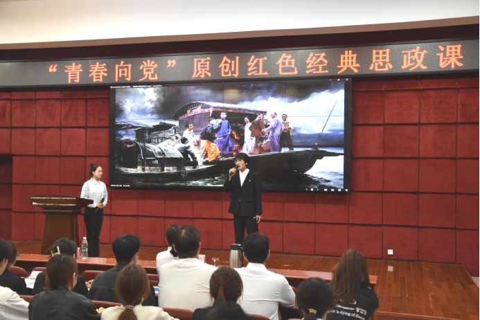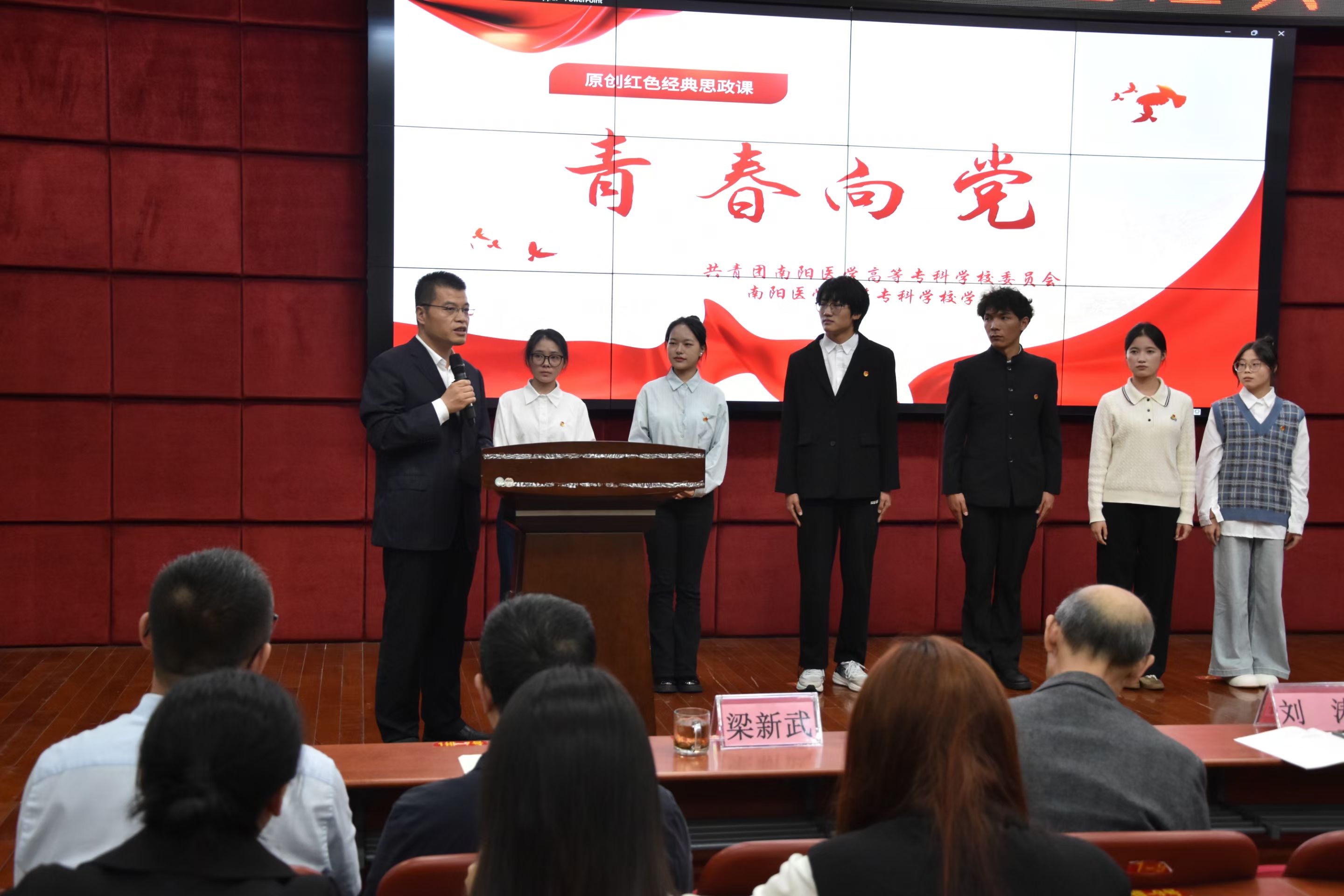 不同于传统思政课堂,此次课堂将讲台完全交给学生。6名学生从聆听者转变为思考者、讲述者与传播者,自主策划设计,通过诗诵、问答、故事分享、视频展播等形式,把青春感悟融入思政教育。同龄人讲述党的故事,以更强共情力推动思政教育从“入耳”走向“入心”,让学生主体地位得到充分彰显。课堂内容紧扣学生成长需求,构建清晰的精神导航体系。从“红船精神”中汲取志气,从陈延年、陈乔年就义事迹中感悟理想坚定,从“老科学家的入党志愿书”里领会科技报国初心,再以身边“仲景学子范浩源”为现实标杆,更以“你为什么入党?”的灵魂叩问为枢纽,引导学子在历史与时代坐标中明晰自我定位,为成长注入精神动力。