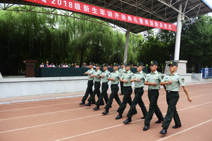 本网讯(文/学生处 梁卡军)今年的9月10日是第34个教师节。在这丹桂飘香、喜庆丰收的美好日子里,南阳医专2018级新生军训开训典礼暨欢送新兵仪式在主校区足球场隆重举行。学校纪委书记张国良,副校长郭万周,中国人民解放军32143部队科长高尚飞,党办、校办、宣传部、教务处、武装部的主要负责同志和各系(部、院)书记出席典礼。大学生应征入伍的新兵代表、承训官兵、各系(部、院)学工办主任、2018级全体辅导员、班主任和6800多名新生参加开训典礼。党委学工部部长、武装部部长孟晓红主持典礼。
