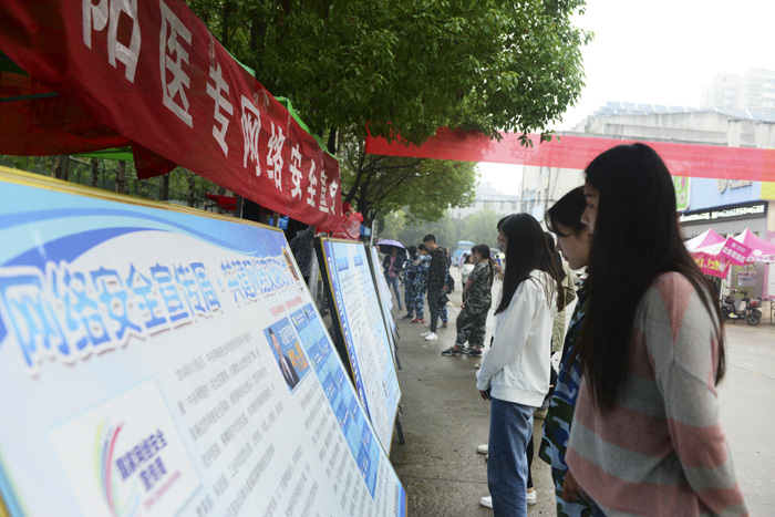 在9月18日网络安全宣传周校园日活动中,党委宣传部在校园主干道展出专题展板,图文并茂地展示了防电信诈骗、校园贷套路、电子邮件和无线网络安全使用注意事项等与大学生息息相关的内容,吸引了不少学生驻足浏览阅读。