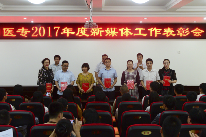 本次年度表彰评选主要依据各新媒体2017年度关注量、阅读量、推送作品量和“校园十佳新媒体投票”票数等数据,进行综合评议后认定。最终,南阳医专官方微信、医路花开(临床系)、仲景传人(中医系)、医技视界(医技系)、南阳医专图书馆微信、南阳医专天使摇篮(护理系)、南阳医专官方微博、南阳医专学生会微博、南阳医专校园之声广播站微博、南阳医专图书馆阅轩读书会微博等平台被评为十佳新媒体。党委宣传部、临床医学系、中医系、医学技术系、图书馆、护理系、校团委等被评为新媒体年度工作先进单位。(编审/李峰松 摄影/程安琪)