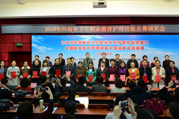 本网讯(文/宣传部 张旭斌)4月4日,由省教育厅、省卫计委主办,我校承办的2018年河南省护理技能竞赛完美收官。本次竞赛自3月29日开赛,历时7天,来自全省28支高职代表队、21支中职代表队的196名选手参加了各自四个项目的比赛。