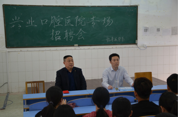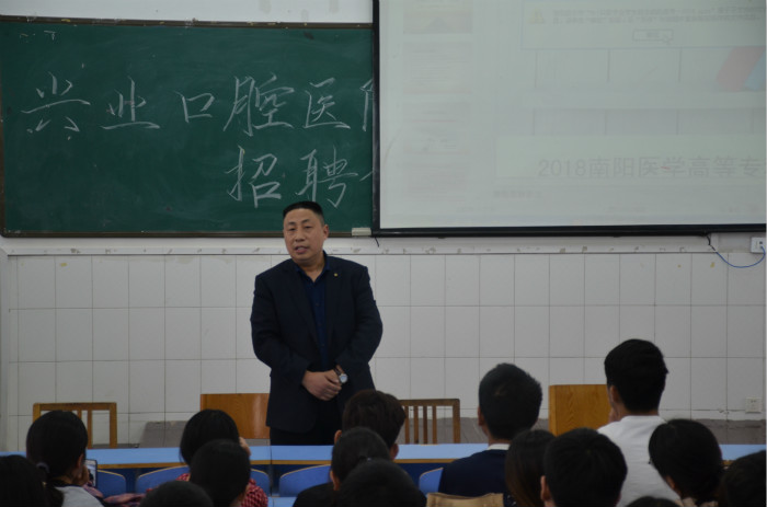 本网讯(文/临床医学系 王川)4月11日下午,邓州兴业口腔医院孙飞院长到临床医学系选拔实习生、招聘毕业生,100多名学生参会。会议由系副主任张立润主持。