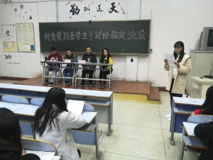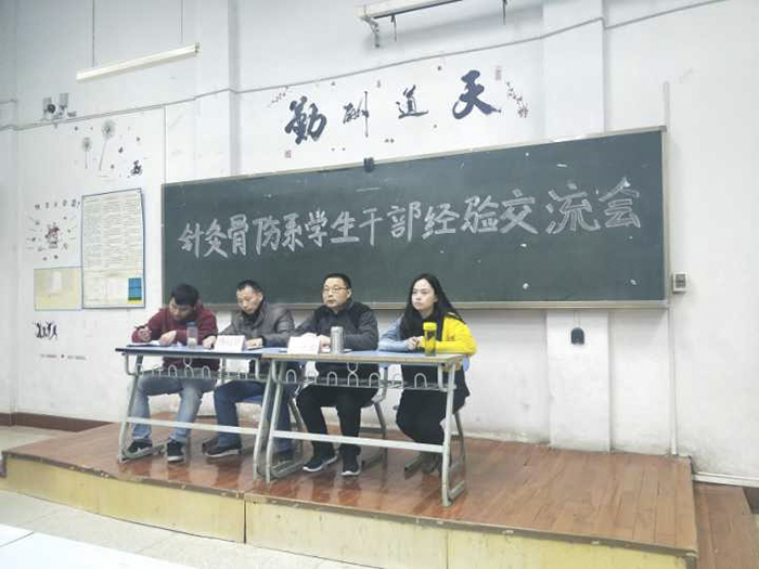 本网讯(文/针灸骨伤系逵建澍)为切实提高学生干部工作能力,提升学生干部素质,加强学生会部门及成员间的沟通与合作。3月20日晚,针灸骨伤系在1号教学楼北505教室举行2018年春期学生干部经验交流会。系党总支书记毕跃忠,学工办主任燕远伟及全体辅导员、班主任参加会议。