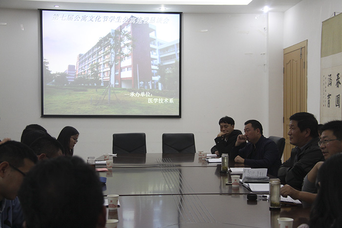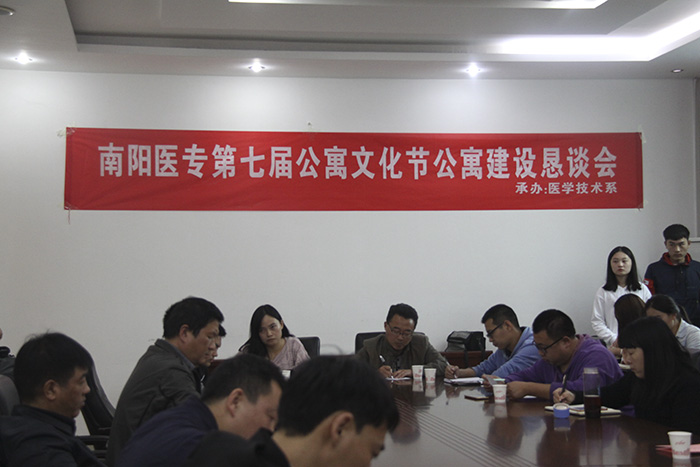 本网讯(文/医学技术系 倪立)11月1日,我校召开“第七届公寓文化节”公寓建设恳谈会。副校长郭万周出席会议,学生处、总务处、保卫处、生活服务中心等部门和各系(部、院)负责人员、学生代表30多人参加会议。会议由医技系党总支书记杨明勋主持。本届公寓文化节由学生处主办,医技系承办。
