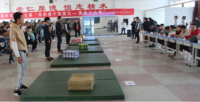 本网讯(文/国际教育学院 夏灵果)11月8日下午,我校在主校区大学生活动中心举办南阳医专第七届公寓文化节“我的被子我做主”叠被子大赛。本次活动由校学工部主办、国际教育学院承办。