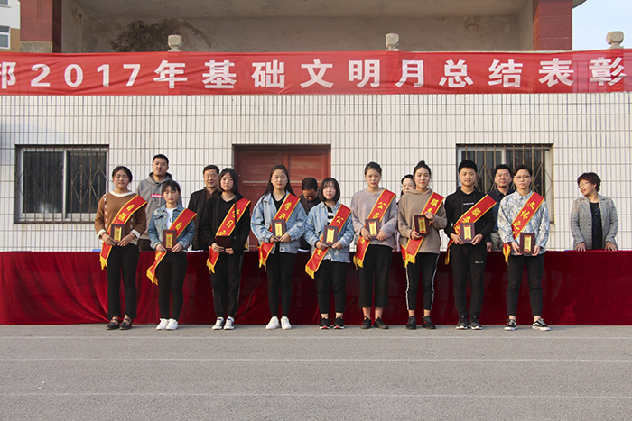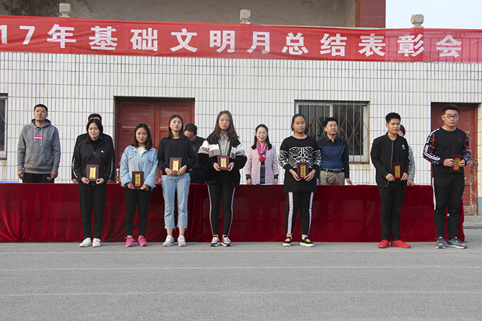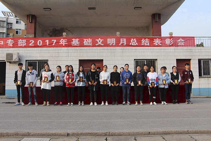 中专部副主任王伦首先宣读了《中专部关于表彰2017年度学生基础文明建设先进集体、先进个人的决定》;与会领导为受表彰的卫生标兵班、纪律标兵班、文明宿舍、文明班级及校园之星进行颁奖。
