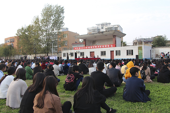 本网讯(文/中专部)10月26日下午,中专部在东校区操场隆重举行2017年基础文明月表彰大会,对在活动中涌现出来的先进典型进行鼓励。中专部领导班子成员、全体辅导员和班主任、2016级和2017级学生代表参加了表彰会。会议由中专部主任李贞保主持。
