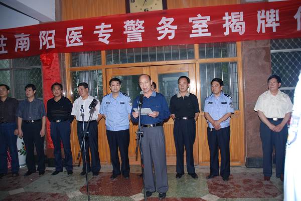 6月22日上午11时,南阳市公安局驻南阳医专警务室揭牌仪式在老办公楼一楼大厅举行。