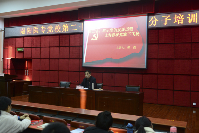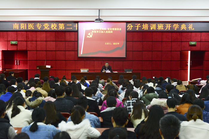 本网讯(文/组织部 刘萍)11月28日下午,南阳医专党校第二十四期入党积极分子培训班,在主校区图书馆五楼多媒体会议室举行开班典礼。校党委副书记逵应坤,党委组织部部长、党校副校长张浩,校长办公室主任、党校校务委员江学法及部分涉学系部党总支和带队老师参加了开班典礼。开学典礼由张浩主持。