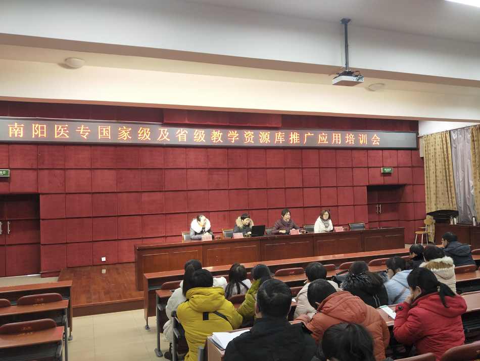 本网讯(文/教务处 刘鑫)为了推动国家级及省级教学资源库的建设和应用,迎接国家教学资源库的检查验收,2019年1月9日下午,我校在主校区图书馆五楼多媒体会议室举办“南阳医专国家级及省级教学资源库推广应用”培训会。特邀湖南中医药高等专科学校党委委员、中国针灸学会理事、教育部针灸推拿传承与创新教学资源库项目主持人陈美仁教授及团队成员莅临我校做作教学资源库推广应用培训,针灸骨伤系、医学影像技术系、中医系、临床系、基础部教师以及其他在针灸骨伤系、医学影像技术系、中医系承担专业基础课和专业课程的教师参加了培训。会议由教务处处长范真主持。