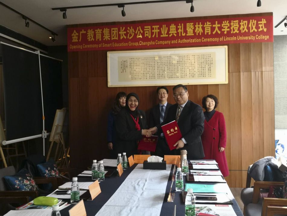 1月22日,应金光教育集团和马来西亚林肯大学学院的邀请,副书记逵应坤带领对外交流合作处有关同志,在长沙与上述集团和高校负责人进行了会面。