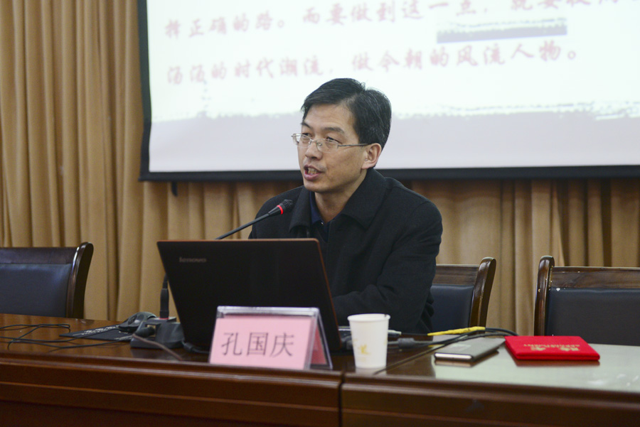 孔教授围绕“从社会核心价值中找寻人生价值实现之路”,深刻阐述了自己对社会主义核心价值观的理解和认识,明确了树立核心价值观关键在于把握时代潮流,用价值性认知决定生命的方向和厚度,详细解读了如何从社会主义核心价值观中汲取个人价值观,找准人生发展坐标,切实提高自己的核心竞争力,从时代潮流中找寻人生发展之路,在奋斗中实现人生价值,在伟大时代里成就伟大事业。
