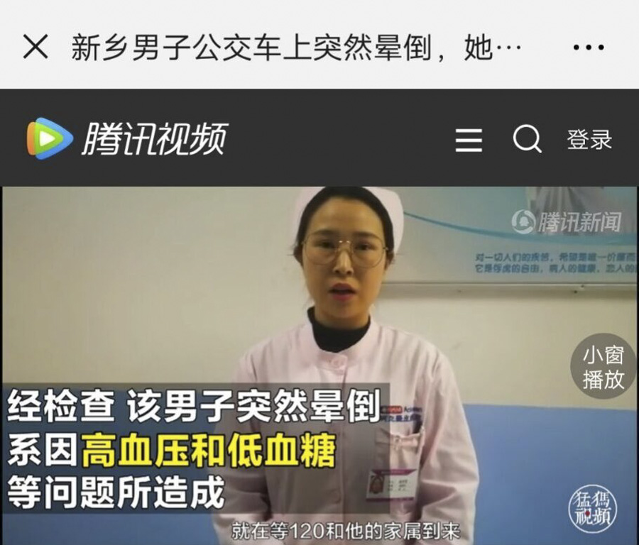 面对晕倒在地的乘客,赵申菲立即跪地施救,测脉搏、问病史、胸外按压、清理呼吸道、不慌不乱,有条不紊,直到病人苏醒过来。公交车上的监控记录下了这一切。