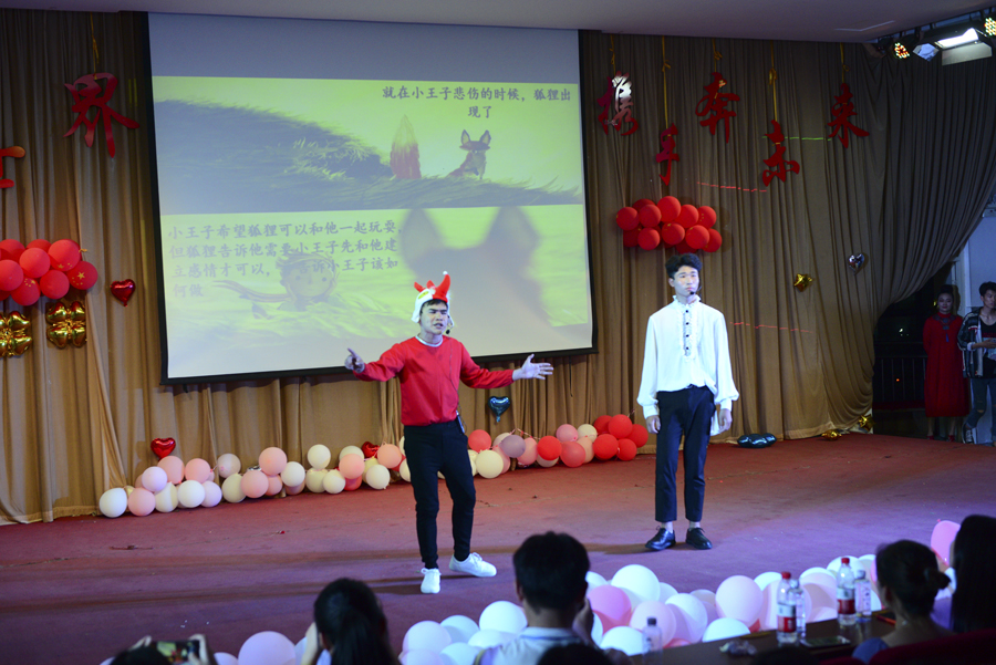 本次文艺晚会以“交流.融合.共赢”为主题,节目形式多样,精彩纷呈。民族文化气息浓郁的开场舞《京韵》拉开文化交流的序幕。诗朗诵《不一样的年代一样的青春》将新时代青年的坚定信念和奋勇向前的气魄展现的淋漓尽致。《外籍师生歌舞大联欢》展示了极具特色的异国文化。他们高超、投入的表演令人震撼,掀起晚会高潮。中外师生同台共舞,欢快和谐,现场气氛热烈,掌声阵阵。“星辉社”深情演绎的《游子吟》,传承了中国孝道文化;情景剧《学会选择,拒绝诱惑》、话剧《小王子》、单口快板《玲珑塔》、动感飞扬的健美操、轻柔妙曼的古典舞、活力奔放的街舞等在中外文化交流中绽放光彩。晚会期间,外国文教专家代表、留学生代表分别发言。艾瑞尔教授赞扬了我校开放办学理念,肯定了我校优良的办学水平与师资环境,真心祝愿两校合作加强,提升国际化程度。最后,在张艳老师《幸福中国一起走》的优美歌声中晚会圆满落幕。(编审/杨金运 摄影/宣传部)