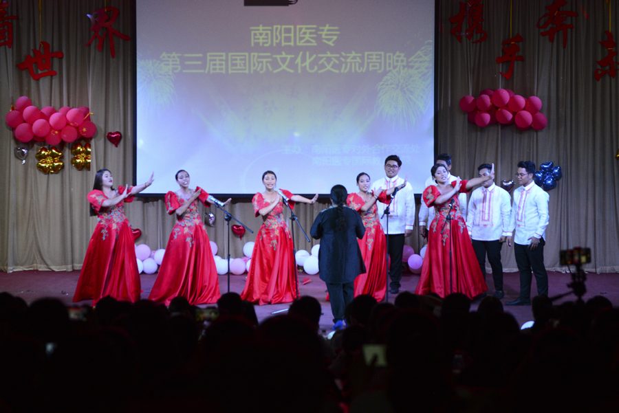 本网讯(文/国际教育学院记者站 刘洋)5月24日晚,由对外合作交流处、国际教育学院主办的南阳医专第三届国际文化交流周文艺晚会在仲景东区报告厅隆重举行。校党委书记全新明、副书记逵应坤、纪委书记张国良,副校长张胜海、郭万周,范真,工会主席田端,相关部门负责人、外籍师生、家长代表与我院师生欢聚一堂,共享文化盛宴。