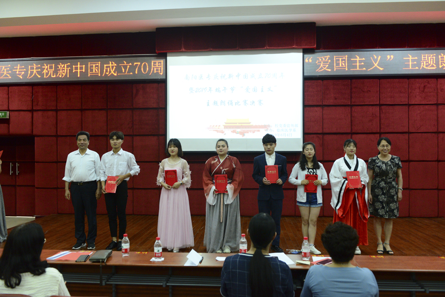 最终,临床医学系《盛世中国》获得一等奖,医学技术系《漂给屈原》、国际教育学院《不一样的年代一样的青春》、护理系《重回汉唐》获得二等奖,中专部《写给祖国的诗》、卫管系《端午梦呓》、药学系《家国入梦》、针灸骨伤系《英雄碑颂》、临床系《祖国颂歌》、中医系《永驻的灵魂》获得三等奖。临床医学系、医学技术系、国际教育学院、护理系获得优秀组织奖。(编审/陈铁良 摄影/宣传部)