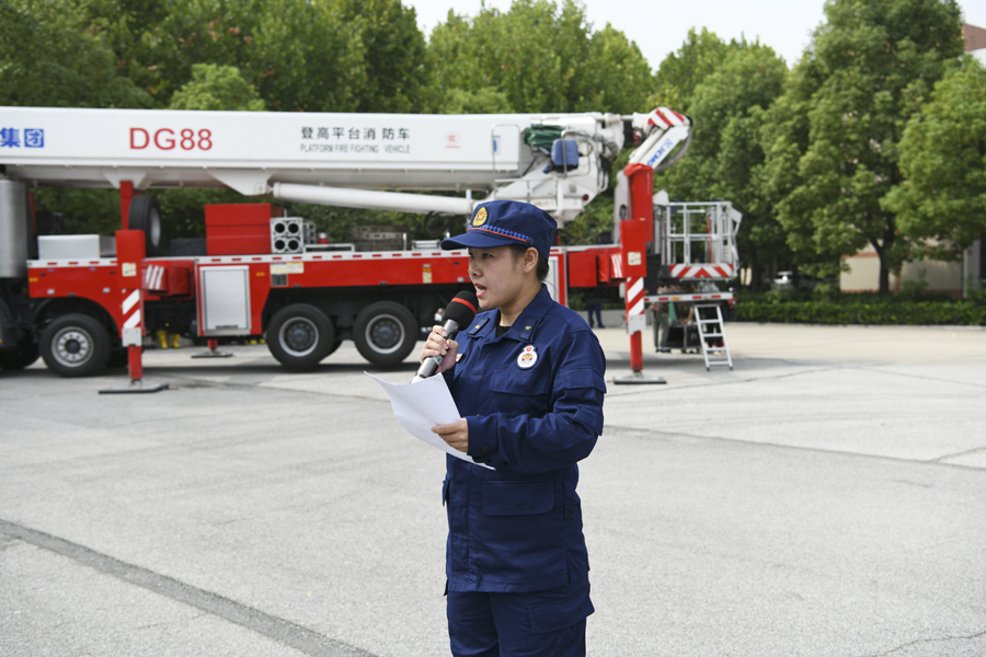 上午10:30分,古晓同志致辞并宣布活动开始。市消防支队田教官结合校园火灾案例和常见的火灾事故,详细讲解火灾报警的常识、日常用火用电的注意事项,初起火灾扑救方法和疏散逃生知识。市消防特勤中队20余名消防官兵和7辆功能不同的消防车把活动推向深入。他们利用先进的设备和高超的技艺,开展了服装展示、车辆展示、搜救犬表演、消防机器人技能展示、灭火器讲解、油槽灭火系列活动。官兵们的精采表演让同学们大开眼界,现场不时传来阵阵掌声和欢呼声。在消防官兵的指导下,同学们勇跃参与油槽灭火。同学们牢记“把销子,提管子,压把子”灭火器使用口决,在一次次从容扫射灭火中,掌握灭火技能的成就感和自豪感洋溢在笑脸上。