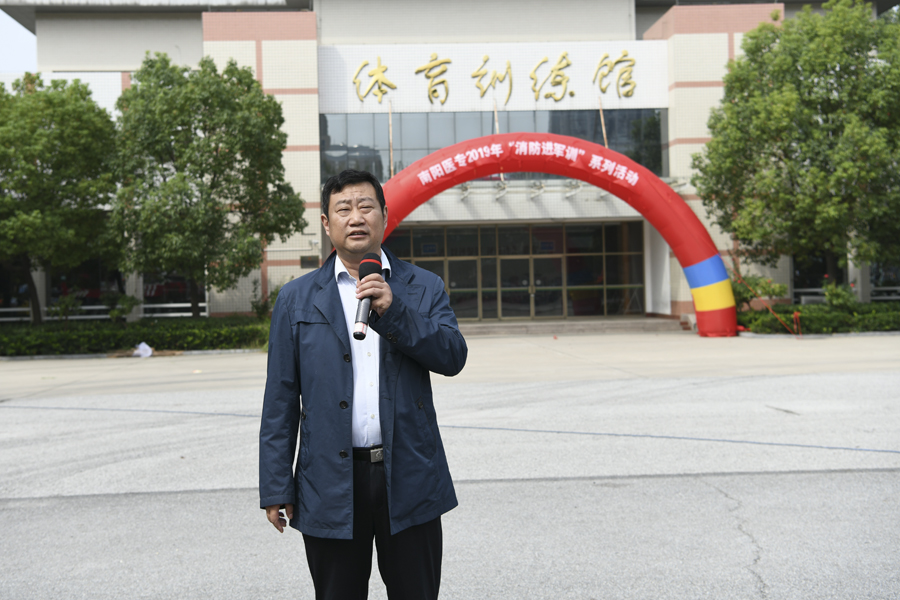 本网讯(文/保卫处 张明立)为深入贯彻落实《河南省教育厅办公室关于进一步加强全省教育系统消防安全工作的通知》,提高我校新生消防安全素质和自防自救能力,学校保卫处邀请南阳市消防支队、南阳市消防特勤中队,于9月20日在主校区开展了“消防进军训”系列活动。我校6000多名新生及部分教职工参加了培训演练。