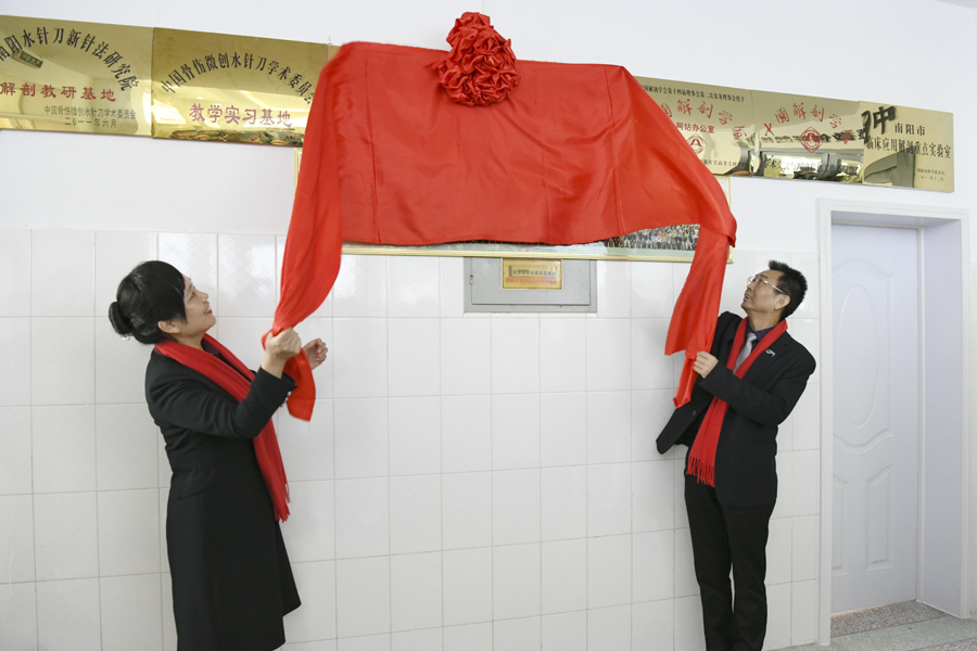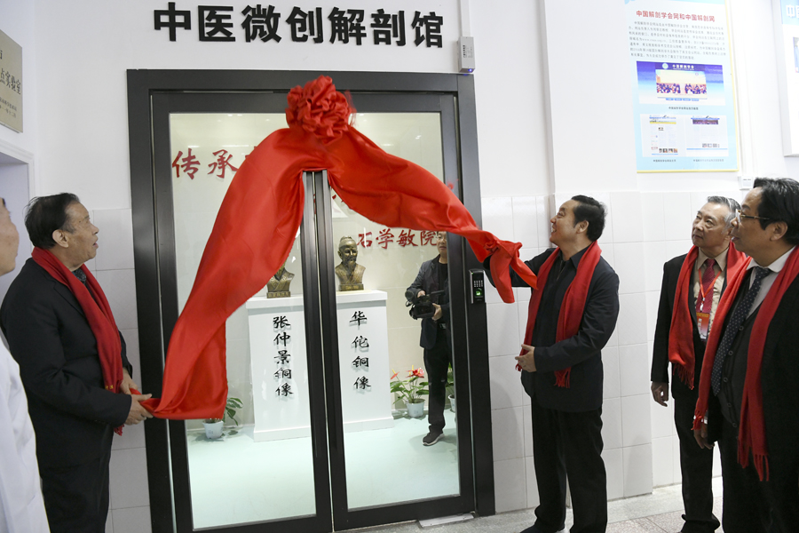 本网讯(文/基础医学部 马瑜红)2019年10月27日上午,国内首家“中医微创解剖馆”开馆仪式暨教育部认定“国家级中医微创应用技术协同创新中心”揭牌仪式在UDE·体育,UDE(中国)人体生命科学馆举行。中国工程院院士、国医大师石学敏院士,与UDE·体育,UDE(中国)党委书记全新明,为“中医微创解剖馆”揭牌。中华中医药学会副秘书长孙永章先生,与UDE·体育,UDE(中国)副校长范真教授,为“国家级中医微创应用技术协同创新中心”揭牌。中华中医药学会国际中医微创联盟主席、中国中医药研究促进会中医微创专业委员会主任委员吴汉卿教授、中国中医药研究促进会副秘书长王凯、瑞典针灸学会会长杨春贵教授等著名专家学者及一百多名代表参加仪式,范真副校长、基础医学部主任刘荣志、党总支书记梁武、针灸骨伤系主任孙欣峰、副主任陈春华等参加仪式。