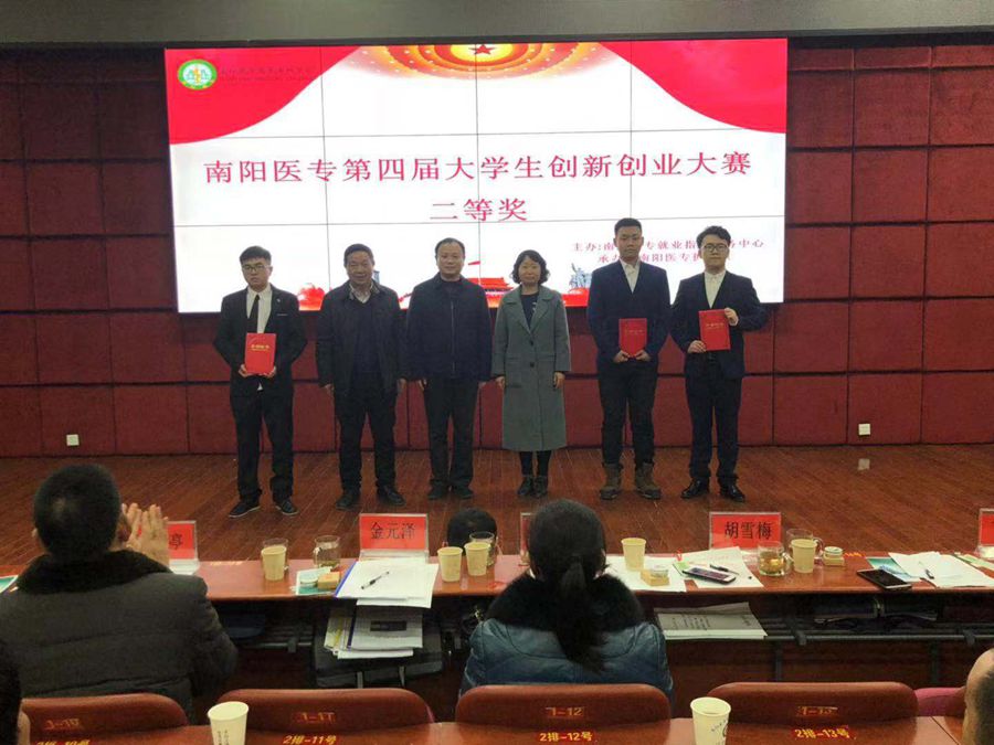 本网讯(文/学生处 张辉)12月19日晚,由学校就业中心主办、护理系承办的第四届大学生创新创业大赛在主校区图书馆五楼学术报告厅圆满落下帷幕。校党委委员、副校长郭万周出席比赛并致辞,系院领导、辅导员、项目指导老师、150余名学生观众观摩了比赛。十个参赛团队参加了此次比赛。河南省首批大学生就业指导名师、南阳师范学院教授张炳兰,河南工业职业技术学院招生就业处处长胡雪梅,南阳农业职业学院招生就处处长金元泽,南阳理工学院招生就业处副处长丁伟,我校设备处处长韩匀亭、保卫处处长牛嵩山、教务处副处长王海鑫担任决赛评委。
