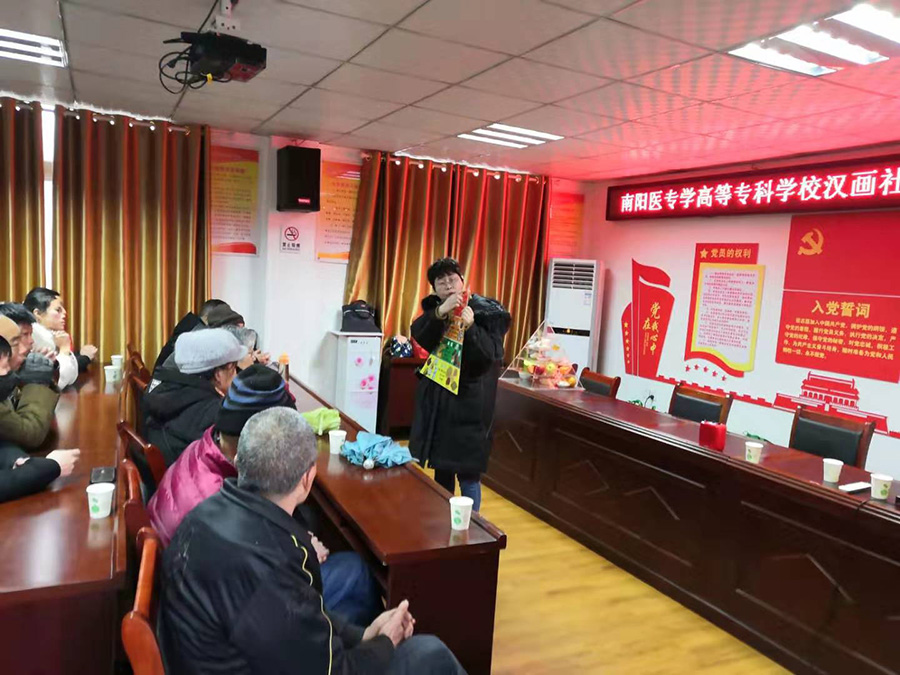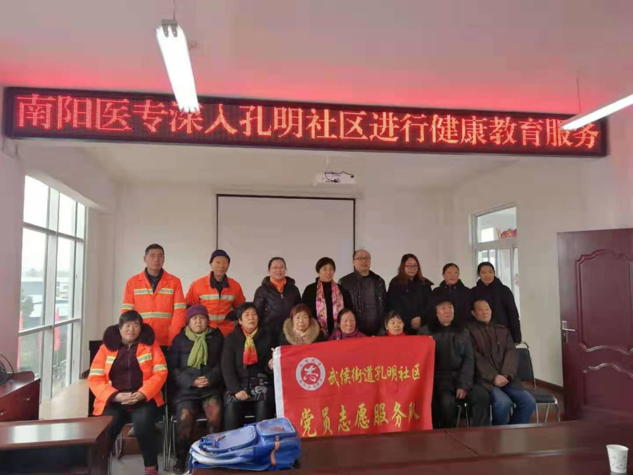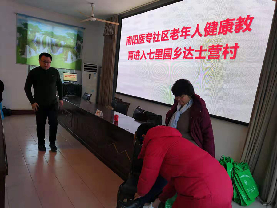 为更好的发挥我校独特的专业优势,助力南阳市卧龙区“三网四化五极”引领战略实施,丰富城乡医疗卫生一体化布局,项目组坚持开门办服务,利用南阳医专与卧龙区校区战略合作的有利时机,及时嵌入教育项目,与卧龙区7个办事处签订服务协议。社区工作人员在场地安排、老年人组织等方面提供帮助,双方密切合作,共同服务社区老年人,保持和促进了老年人心身健康,使活动朝着个性化、专业化、亲情化方向发展,真正实现了社区老年人、社区、项目实施主体、南阳医专四方共赢。目前,项目组与各街道充分利用即将到来的“双节”这一有利时机,深入基层社区开展送健康、送爱心、送春联活动,增加了节日气氛,得到社区居民高度评价,为社区居民献上一份独特的新年礼物。