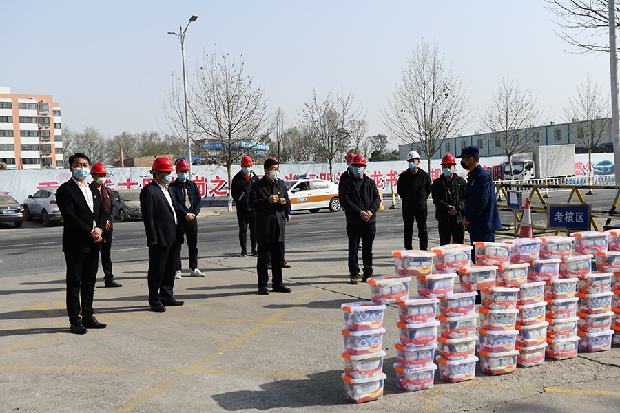 本网讯(文/宣传部 程安琪)3月20日上午,校纪委书记张国良带领学校基建处负责人、承建仲景东区学生公寓建设项目的河南省第一建筑工程集团有限责任公司负责人,慰问我校仲景东区“邻居”消防队指战员,并发放价值5000元的生活慰问品。