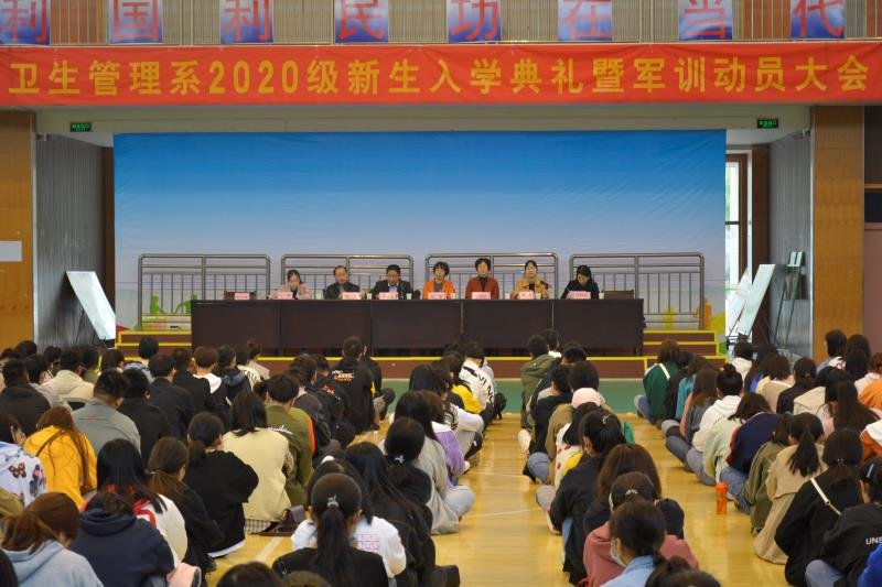 本网讯(文/卫生管理系 董菡)10月12日上午,卫生管理系2020级新生入学典礼暨军训动员大会在学校体育馆顺利举办。系领导班子、2020级班主任和全体新生参会。大会由系党政办主任董菡主持。