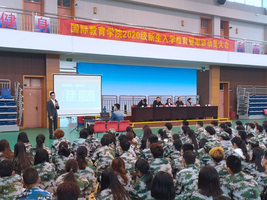 本网讯(文/国际教育学院 张蕊)10月12日下午,国际教育学院在仲景西区体育馆举办2020级新生入学教育暨军训动员大会。学院领导、辅导员和全体新生参加了会议。大会由党总支书记张少羽主持。