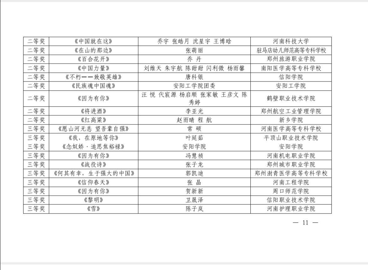 本次大赛由河南省教育厅主办,自4月份启动以来,我校高度重视,广泛宣传,引导和鼓励广大师生踊跃参赛,并举办了校级比赛,经过层层选拔,专家评审,最终推荐《中国力量》和《致敬,白衣英雄》两个作品代表我校参加省级比赛,并取得优异成绩。