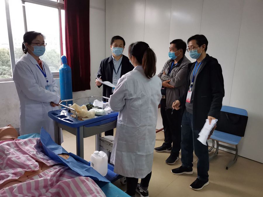 本网讯(文/教务处 王春成 龚垒)10月27日,国家医学考试中心副主任刘蓉、国家卫健委二级调研员贾丹丹一行6人在河南省卫健委医政医管处副处长刘笑天等领导的陪同下,对我校国家医师资格实践技能考试基地建设情况进行评估认定。南阳市卫健委党组成员、副主任王志昂,南阳市卫健委考试中心领导,南阳医专党委副书记、校长王立义,副校长范真和学校相关部门负责人参加评估认定工作。