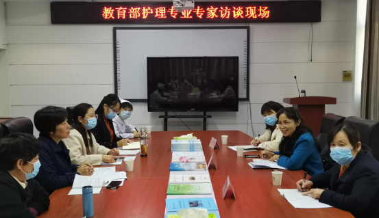 汇报结束后,调研组专家分五组进行访谈。一组由卫生行指委沈彬主任委员及教育部职成司教学处徐红涛主任组成,访谈了河南省职业技术教育教学研究室副主任王身佩,河南省教育厅职成教处干部李文举、南阳市卫健委副主任黑喜栓、南阳医专副校长范真。二组由卫生行指委临床医学类专指委主任委员、九江学院国际交流学院院长夏修龙,及行业专家南阳市第二人民医院副院长兼心内科主任主任医师吕树志、南阳医专一附院血液内科主任主任医师党惠兵组成,访谈了临床医学系李玲副主任和核心课程教师。三组由苏州卫生职业技术学院口腔系副主任兼口腔医院副院长朱晔教授,及行业专家南阳市第一人民医院口腔内科主任副主任医师王虹、南阳市口腔医院口内科主任医师姚瑶组成,访谈了口腔系专业负责人黄川锋和核心课程教师。四组由卫生行指委护理分委会委员、山东医学高等专科学校护理系主任邢爱红,及行业专家南阳市南石医院神经内科护士长主管护师张艳柳、南阳医专一附院护理部副主任主任护师邵聪文组成,访谈了护理系主任吕云玲和核心课程教师。五组专家为卫生行指委临床医学分委会委员、菏泽医学专科学校健康管理系主任石晓峰,访谈了南阳医专其他医学类专业负责人。