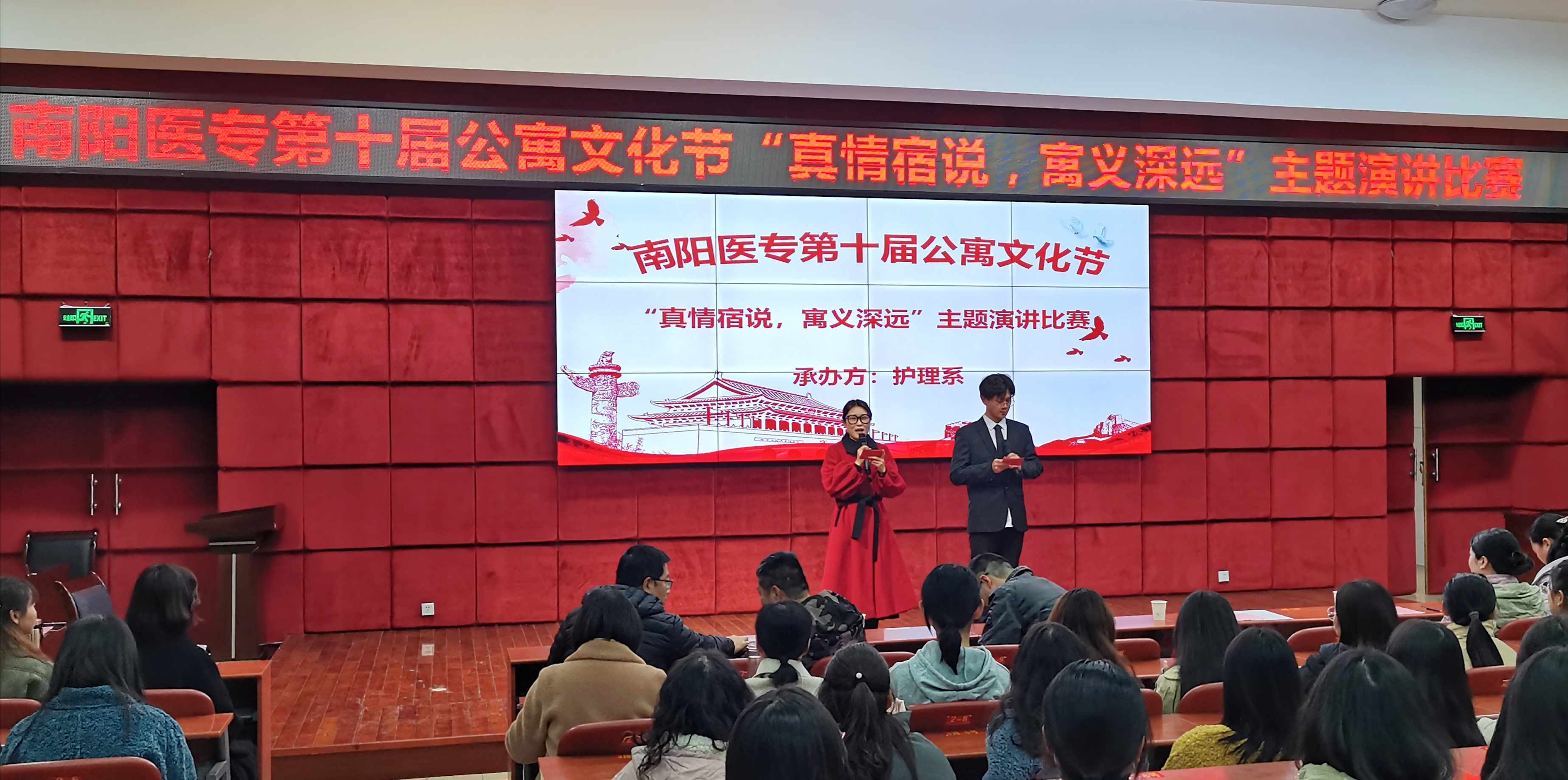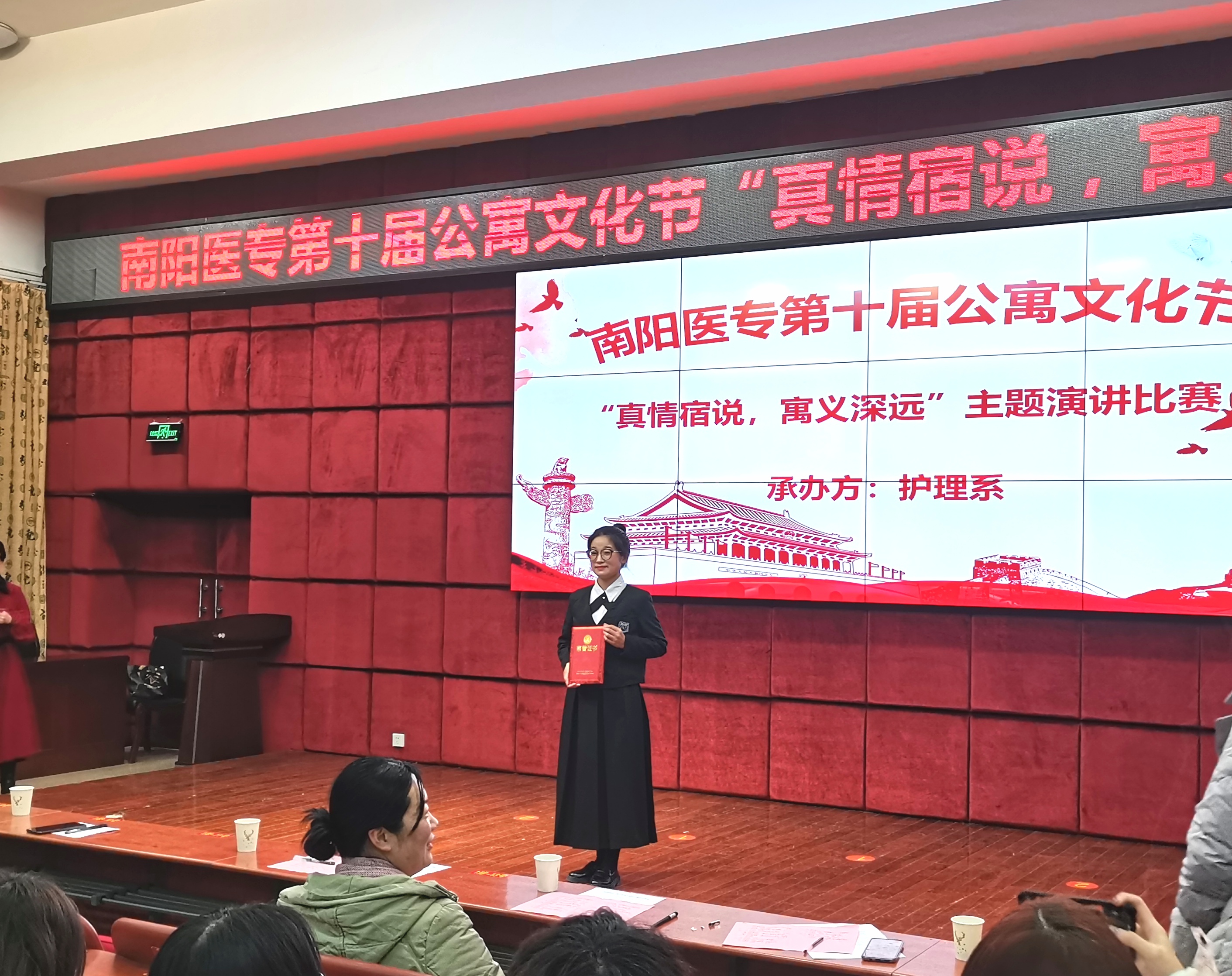 本网讯(文/护理系 闫珂)为大力加强大学生公寓精神文明建设,营造积极健康的学生公寓文化氛围, 进一步强化学生公寓“管理育人、服务育人、环境育人”的功能,12月9日下午,由护理系承办的我校第十届公寓文化节“真情‘宿’说,寓义深远”演讲比赛在图书馆五楼举行,校宣传部、团委、学生处的有关领导和老师担任了评委。