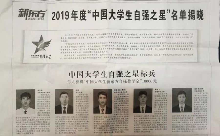 本次“中国大学生自强之星”奖学金推报工作由共青团中央、全国学联指导,中国青年报社、新东方教育科技集团联合开展。活动以“青春自强 刚健勇毅”为主题,重点关注家庭经济贫困学生以及在投身新冠肺炎疫情防控、服务全面建成小康社会、助力乡村振兴、参与社会实践、热心志愿服务、弘扬网上文明等方面有优秀事迹,在当代大学生中能够起到榜样作用的青年学生,为当代青年大学生实现中国梦树立可亲、可敬、可信、可学的身边榜样。本次推报工作采用“全国—省—校”三级体系,经学校团委、河南省团委两级推荐,全国组委会组织专家召开评审会,最终产生10名“中国大学生自强之星标兵”、2190名“中国大学生自强之星”。 河南省共有90名学生荣获“中国大学生自强之星”,我校朱翠萍同学是其中光荣的一员。自2015到2019年,我校学生已连续5年获此殊荣。(编审 杨金运)