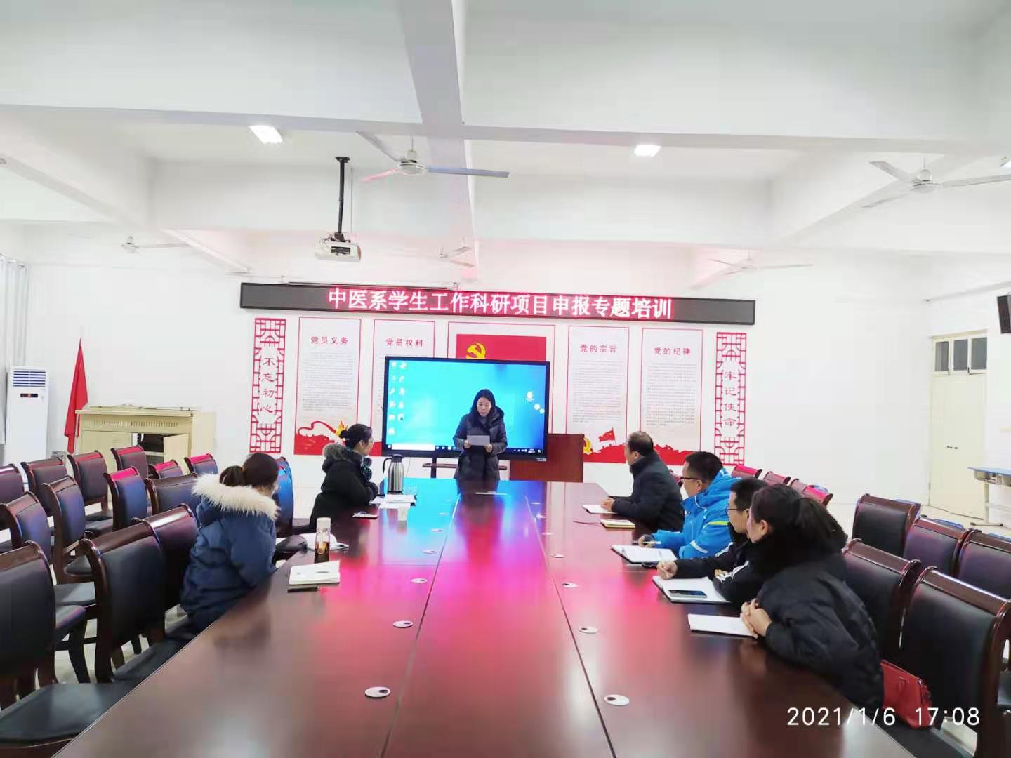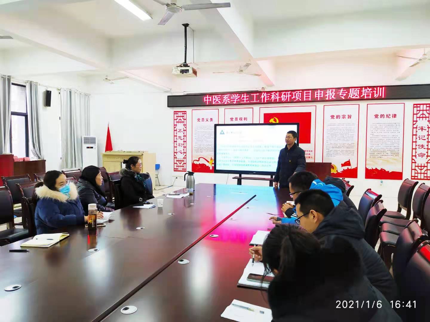 本网讯(文/中医系 李温涛)为落实学校“双高校”建设工作部署,进一步提升辅导员队伍的专业水平和职业能力,1月6日下午,中医系邀请学生处副处长余飞海和卫生管理系学工办主任何伟峰对全体辅导员进行学生工作科研项目申报专题培训。