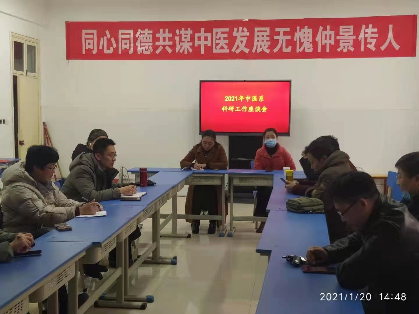 本网讯(文/中医系  王翘楚)1月20日,中医系召开科研工作会议,各教研室主任及骨干教师参加会议,会议由张明丽书记主持。