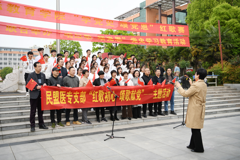 来自国教院2019202016个班级的学生代表队精神饱满,激情高歌。同学们满怀对党和祖国的无限忠诚与热爱,颂扬党的光辉历史,讴歌党的丰功伟绩,抒发爱党爱国情怀。《没有共产党就没有新中国》等一首首脍炙人口的红色歌曲响彻美丽和谐的医专校园,展现了新时代大学生朝气蓬勃、昂扬向上、紧跟党走的精神风貌。一支部、基础医学部党总支、外事国教党总支的全体党员演唱了《时代号子》《团结就是力量》《打靶归来》《歌唱祖国》等红歌,表达了对党的热爱感恩之情和奋进新时代的责任担当,彰显了医专教师党员风采。