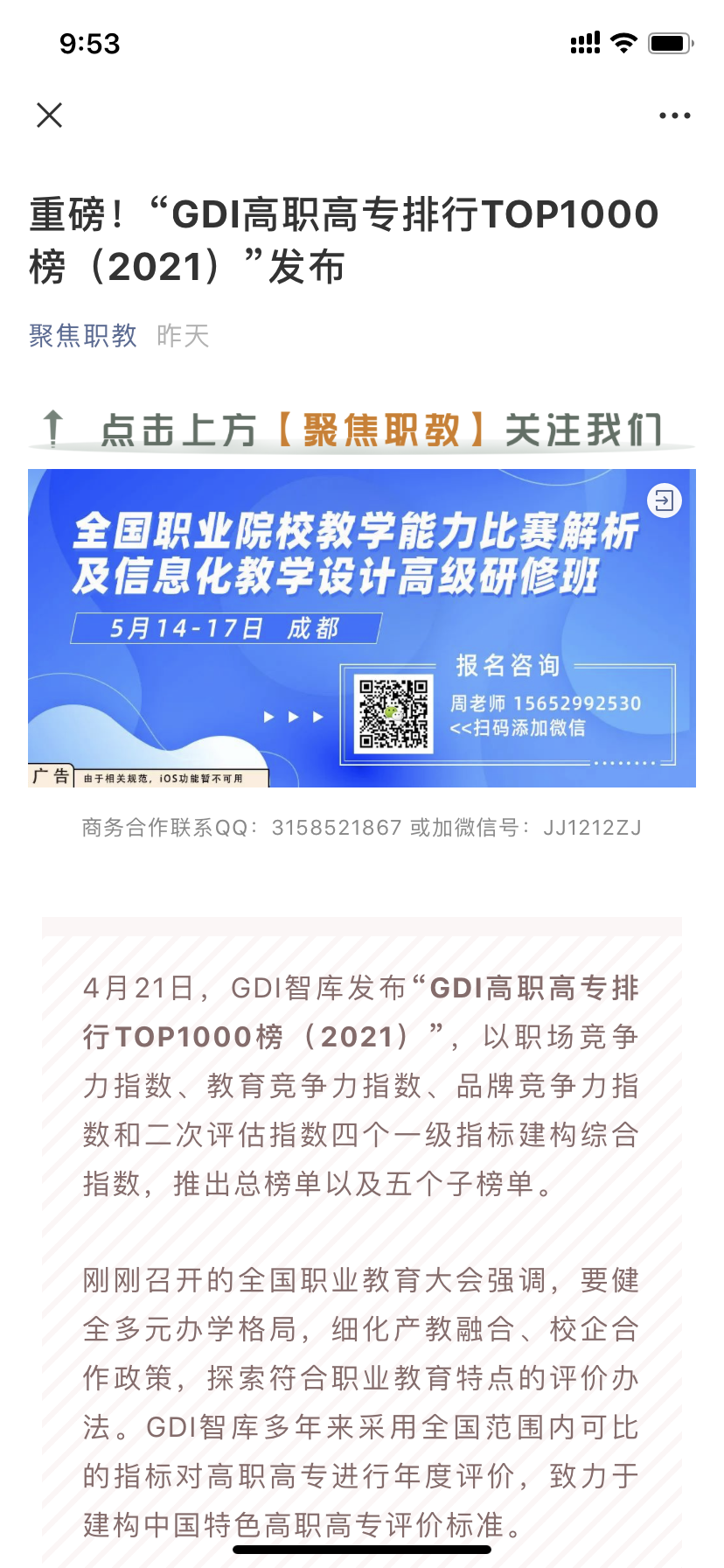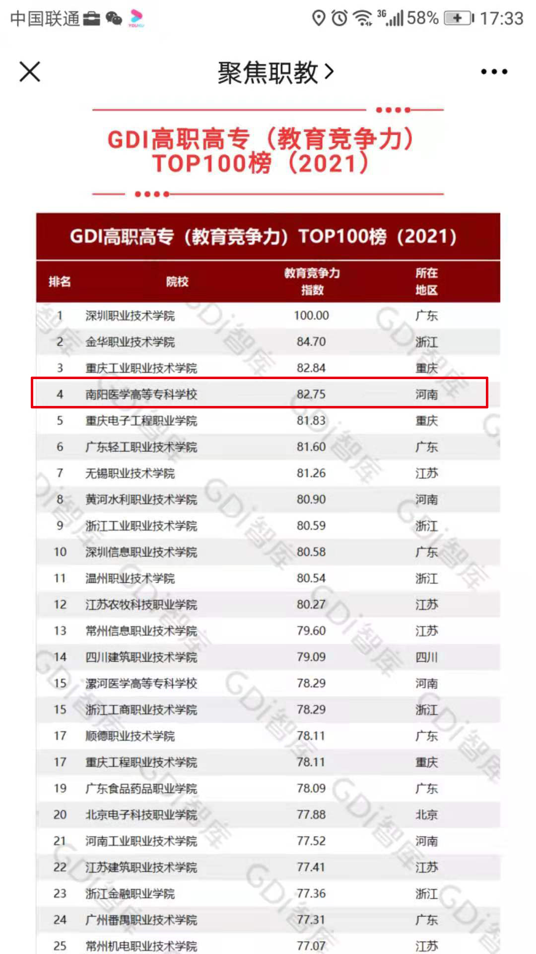 4月21日,GDI智库发布“GDI高职高专排行TOP1000榜(2021)”,榜单在对全国1451所院校的职场竞争力、教育竞争力、品牌竞争力和二次评估指数进行科学评价的基础上得出综合指数,根据指数高低确定前1000强院校名单。UDE·体育,UDE(中国)综合竞争力位居全国医学院校第一。