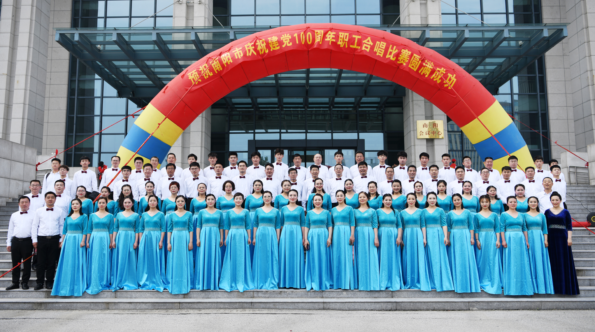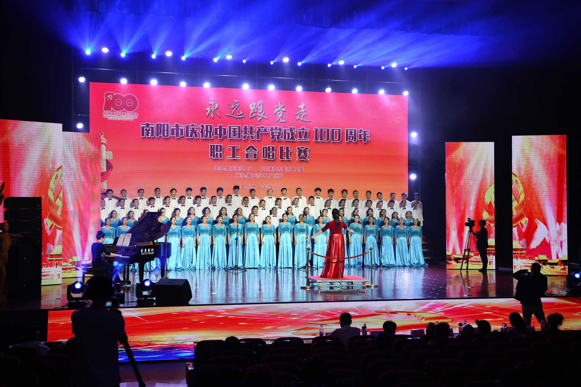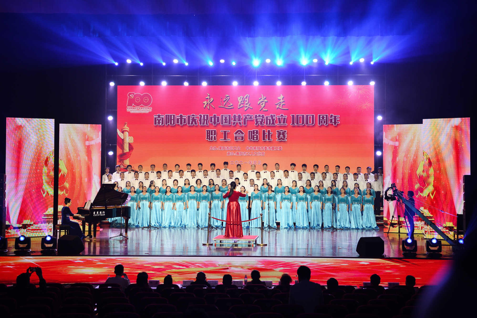 本网讯(文/校工会 朱东民)5月20日,南阳市总工会、市委市直工委举办“永远跟党走”南阳市庆祝中国共产党成立100周年合唱比赛,来自市直的三十一支代表队参赛,我校参赛曲目《没有共产党就没有新中国》荣获二等奖。
