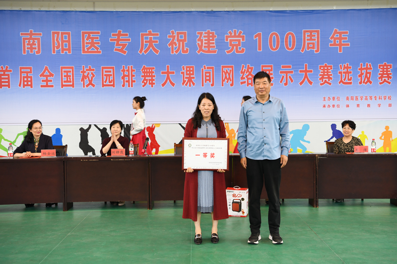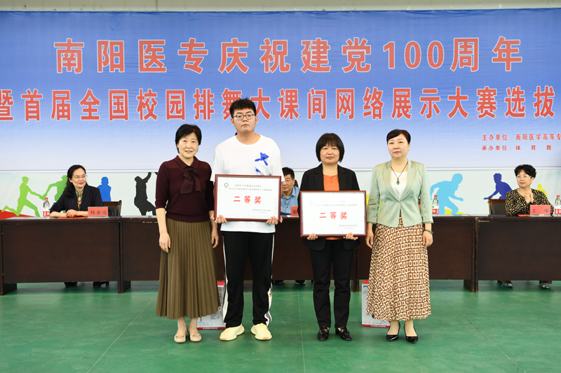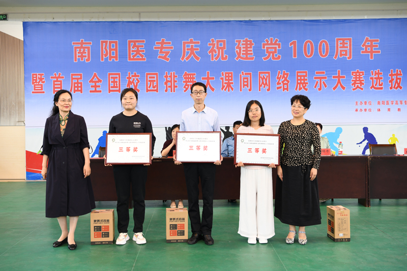 在开幕式之后,随着《没有共产党就没有新中国》歌曲响起,比赛正式开始,我校9个系(部、院)分别组队参加了比赛。最后,卫生管理系荣获一等奖,护理系、医学技术系荣获二等奖,临床医学系、中医系、药学系荣获三等奖;卫生管理系被组委会授予优秀组织奖,国际教育学院、针灸骨伤系、中专部被授予体育道德风尚奖,与会领导为获奖代表队颁奖。