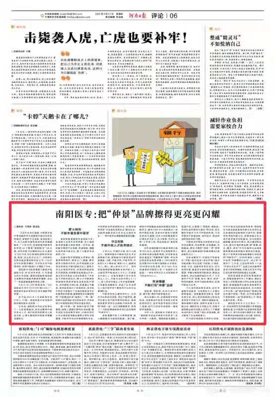近年来,南阳医专为社会培养出了一大批医德高尚、技术过硬的中医学专业人才,他们在各自的舞台上绽放光彩,让博大精深的仲景医学精髓造福苍生。
