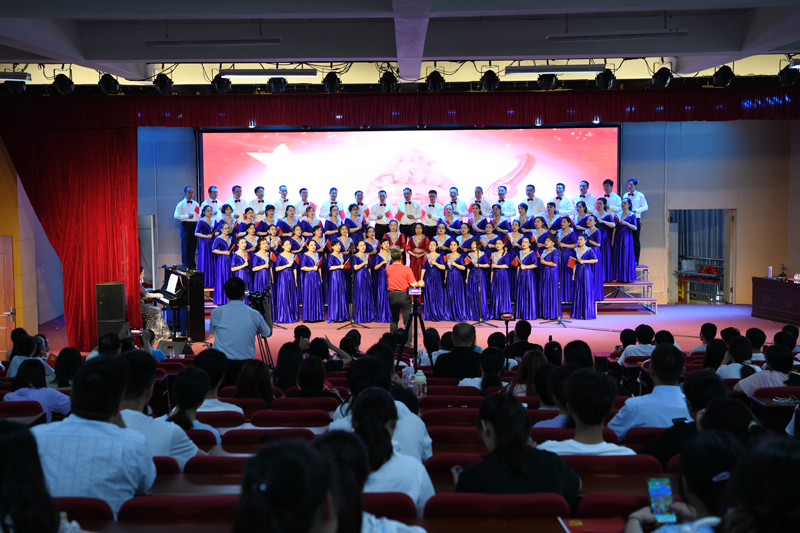 各参赛队用铿锵的旋律、嘹亮的歌声、饱满的状态,依次登台演唱了《没有共产党就没有新中国》《中国中国鲜红的太阳永不落》《七律·长征》《天路》《唱支山歌给党听》《我的中国心》、《团结就是力量》《当祖国召唤的时候》等红色歌曲,各参赛队用歌声或激情豪迈,或深情婉转,或催人奋进,带领现场师生重拾红色记忆,回顾峥嵘岁月,表达了对党和国家的热爱之情。